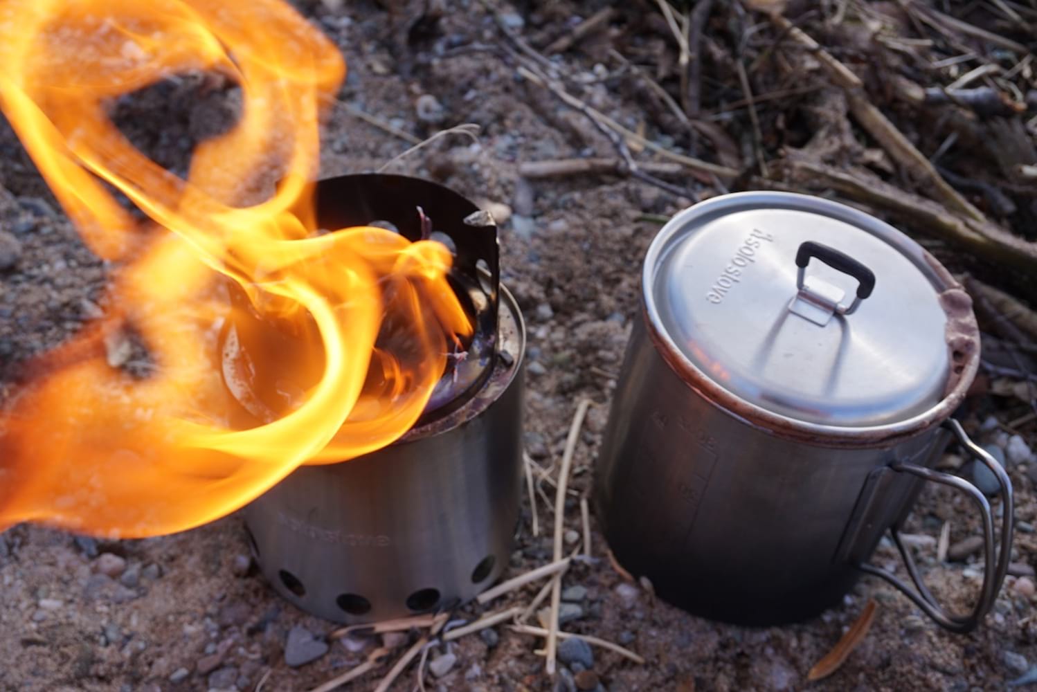So should you buy one? For the money, I think it represents good value. The design and quality of construction are hard to fault. Unlike pretty much every titanium pot I have ever used, the slender pot arms did an excellent job of insulating my fingers from the heat. The open flame design which at first struck me as a bit of a novelty soon won me over. Difficulties in finding dry twigs aren’t the show stopper I thought they might be as once up and burning, pretty much anything would burn.