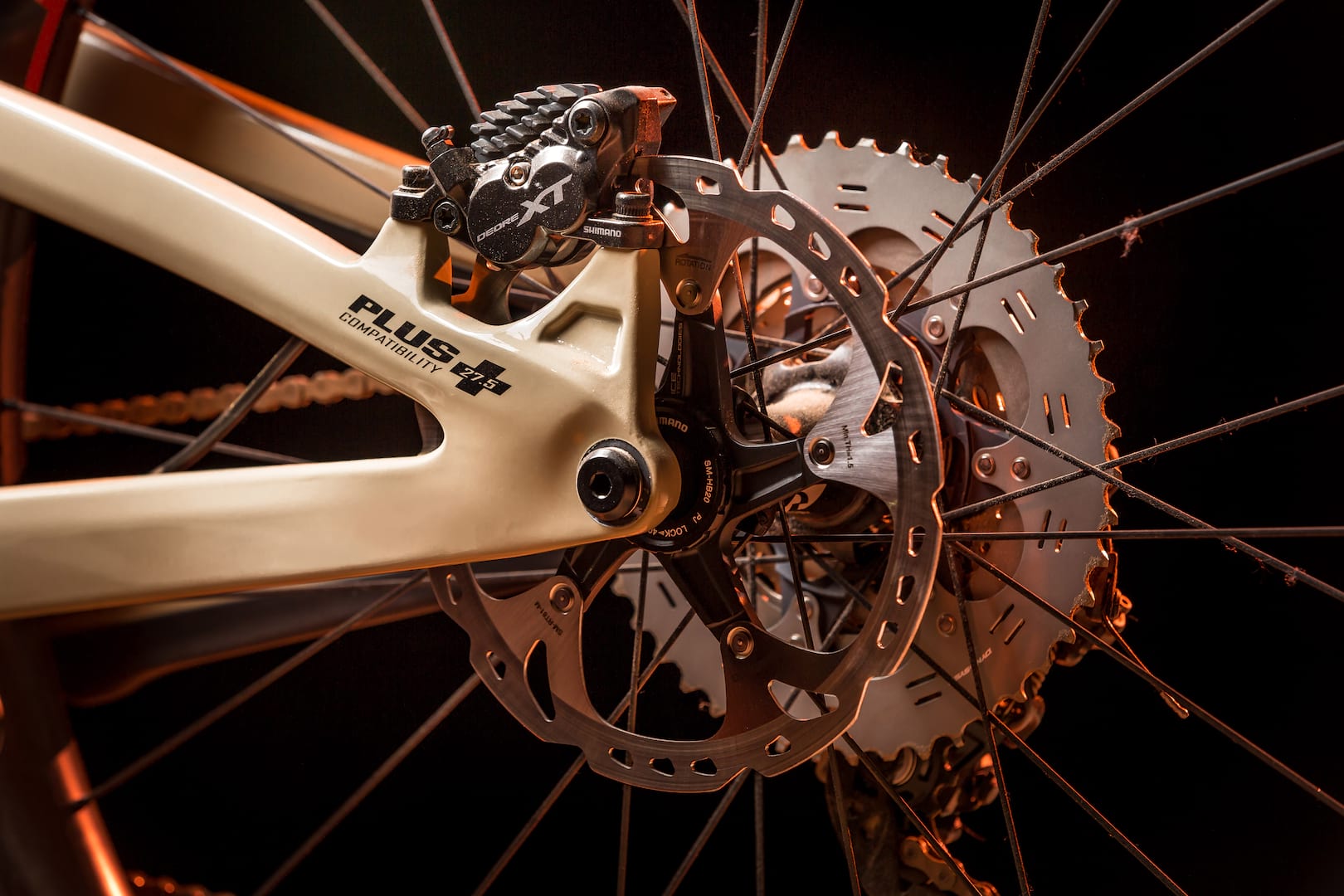 The real benefit of Super Boost Plus is the increased chainring clearance though, which rather than being pushed out by 3mm (Ã la regular Boost), is pushed out 6mm. Once you’ve got that extra room to play with, then you can start slamming the rear wheel in right up against the BB shell. To get this 6mm offset, the chainring is simply flipped around, so the cranks and BB are no different to any other Boost or non-Boost setup. Crucially, this keeps Q-factor the same as a regular Boost bike.