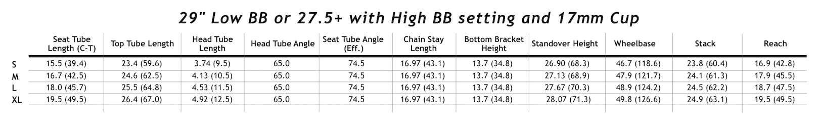 - Max tyre clearance: 29×2.6in, 27.5×2.8in