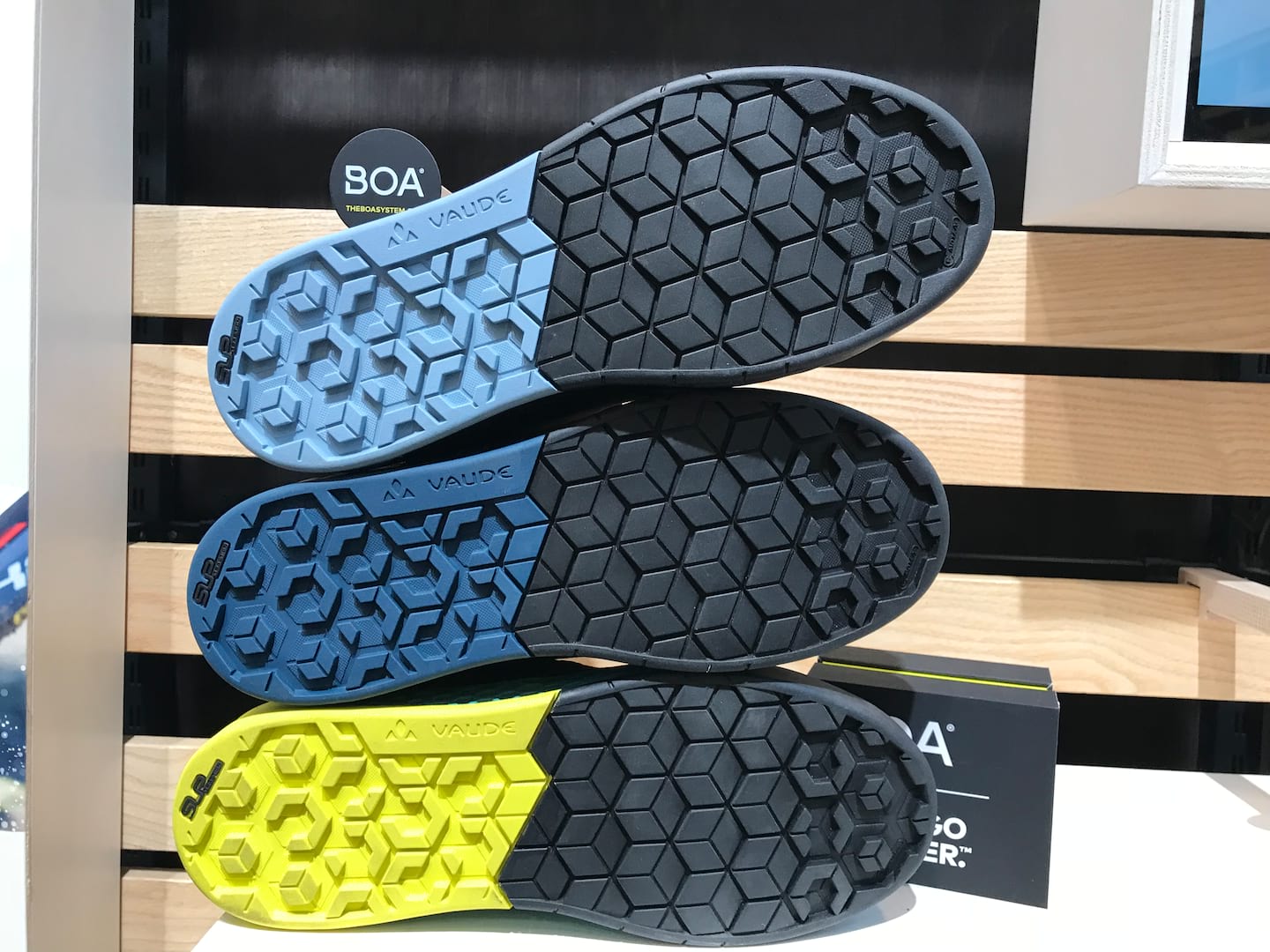 Also taking on the flat pedal kings are Vaude. We saw their first go at flat pedal shoes a couple of years ago, and we were impressed with their efforts at producing something a bit more weatherproof than had previously been available. They weren’t happy with the soles though, so they’re back with a new compound and a fair array of flat soled offerings.