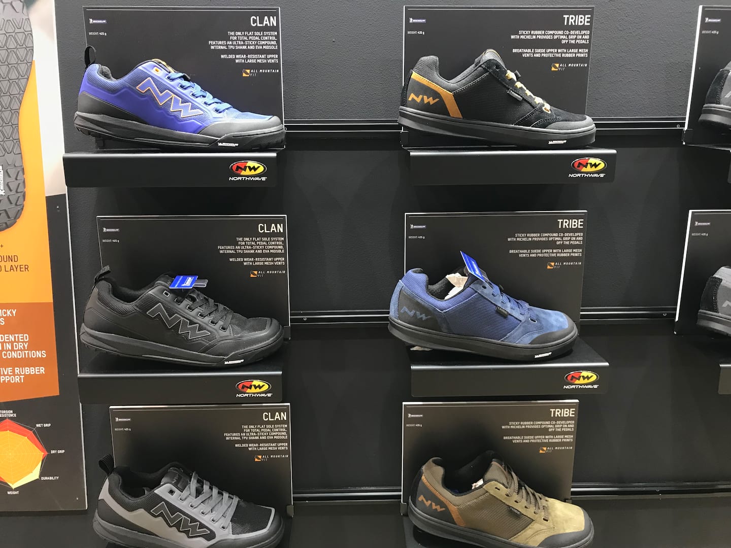 Northwave has introduced its first flat pedals shoes, with two options at two price points. First up is the Clan, which has a very soft and sticky Gecko+ rubber sole, but made with a three layer sole to add stability to what might otherwise end up like a plimsole.