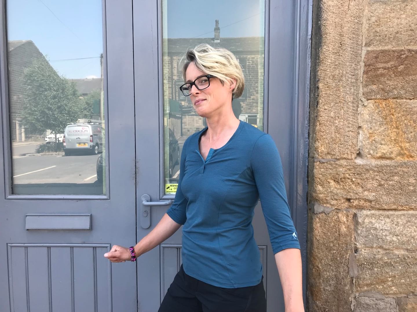 Hannah was given this when she was testing out a new e-road bike. No, she didn’t even burst into flames! Hannah’s roadie husband was keen to nab the t-shirt, though not so keen to smile, so we cut his head off.