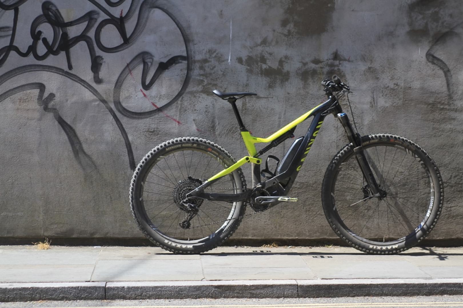 Dean hopped aboard this a while back, and now we’ve got one in the office to test. Only we’ve already been out on it for a huge day out, so you’re not getting any closeups because then you’d be able to see the dirt. 150mm rear travel, 160mm fork, 29er front wheel and 27.5+ rear wheel…nope, this is not just a Spectral with a battery strapped to it.