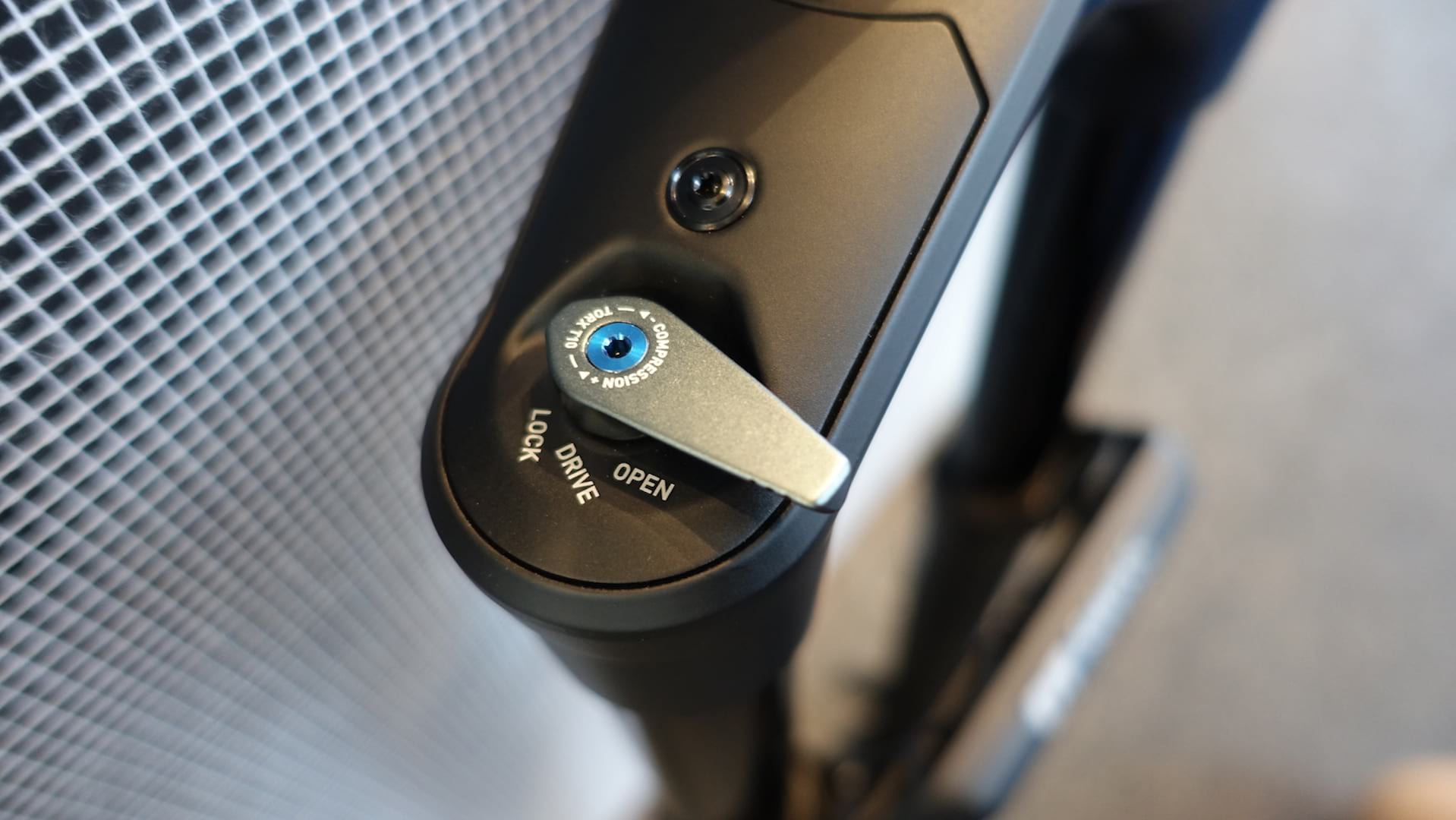 - Adjustments: air pressure, air spring volume, 3-position Open/Drive/Lock compression lever, low-speed rebound & low-speed compression