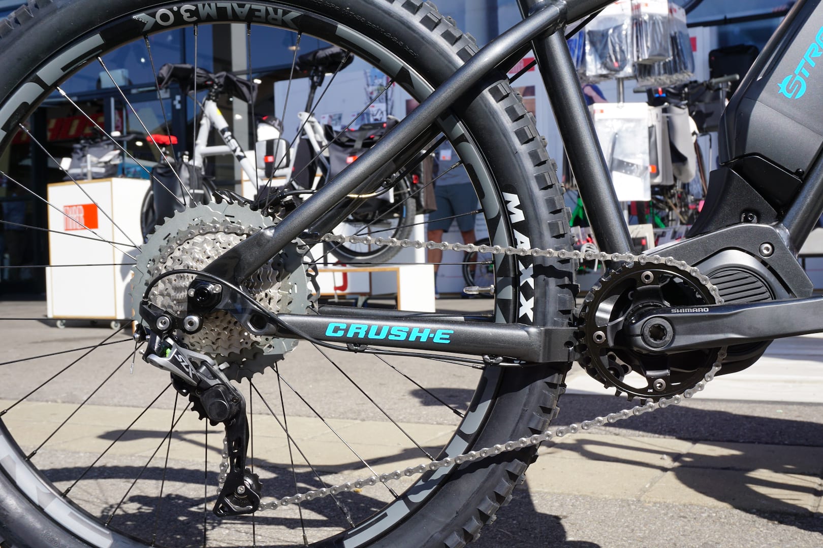 The Crush-E Prototype is designed around a 27.5in wheel platform and can handle chunkier 2.8in tyres compared to the standard Crush’s 2.6in limit. Other frame features include internal cable routing for a dropper post, bolt through 148 x 12mm rear axle and a 5-year warranty