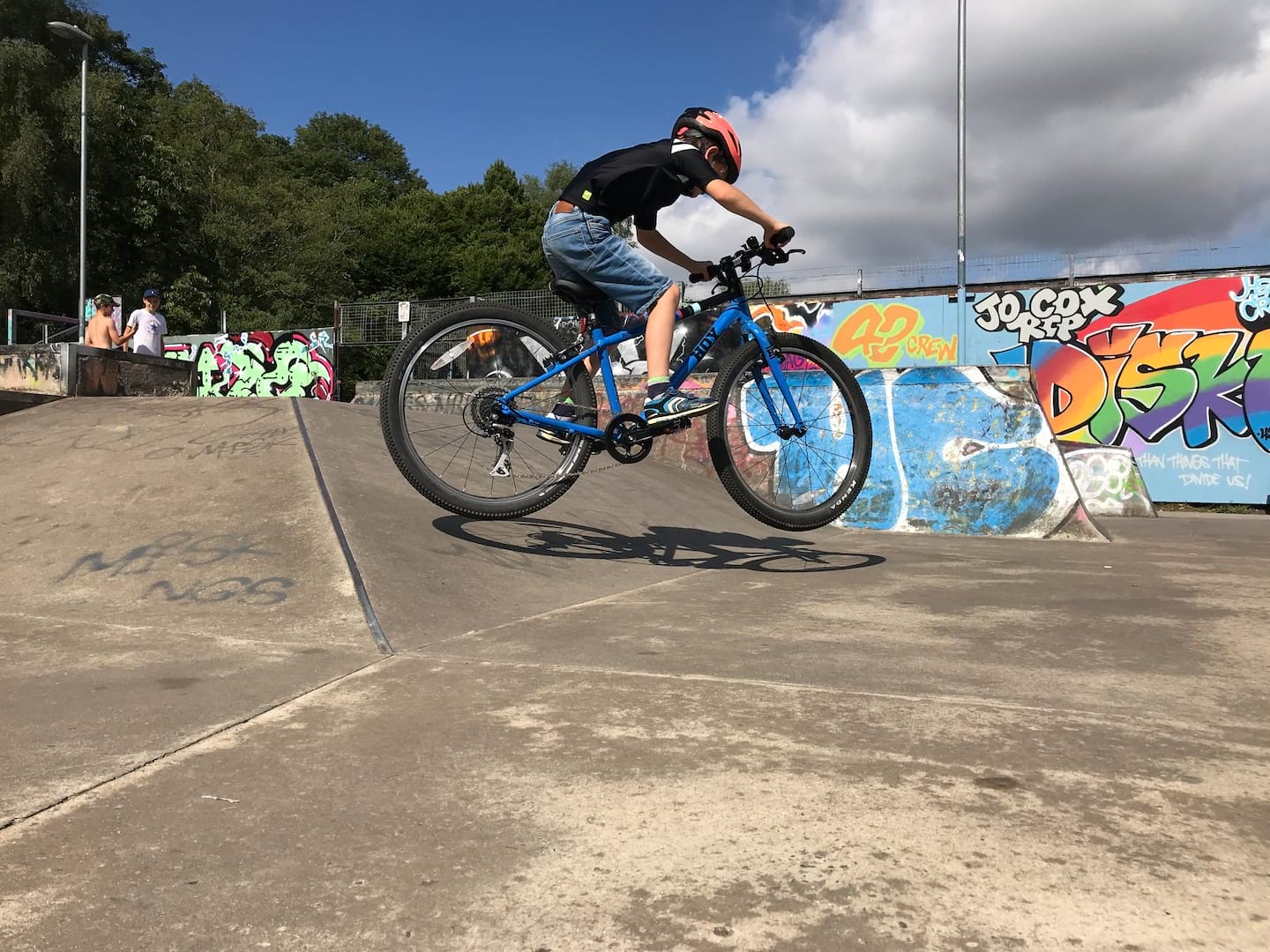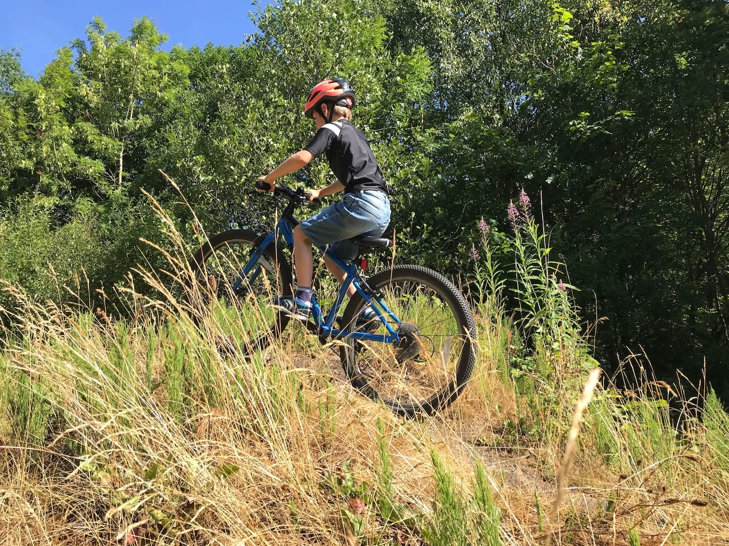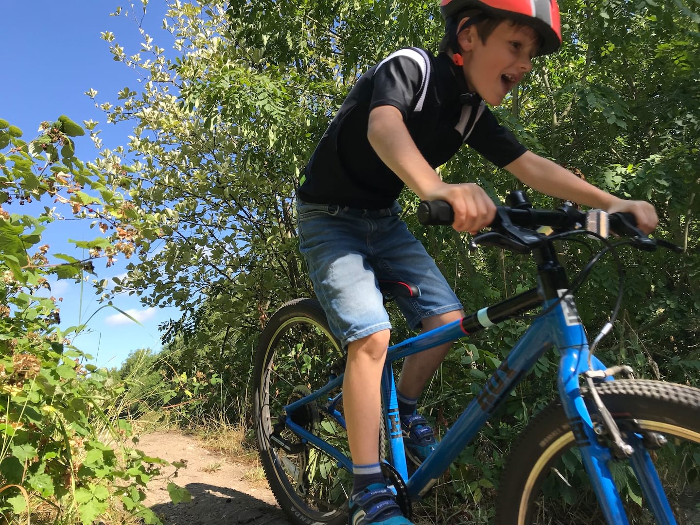 At 130cm tall and with a 52cm inside leg, Rafe was at the lower end of the height range for this bike, but – other than perhaps looking a little like a short XC rider on a 29er – he’s had no problems with fit. The brakes and thumb shift gears are easy to operate, his position on the bike is good, and there’s room to grow. It would be nice to have a quick release for easy swapping between children – but maybe it’s just us that often finds ourselves sharing a bike round a group of kids. After all, this is a nice looking bike that does attract attention.
