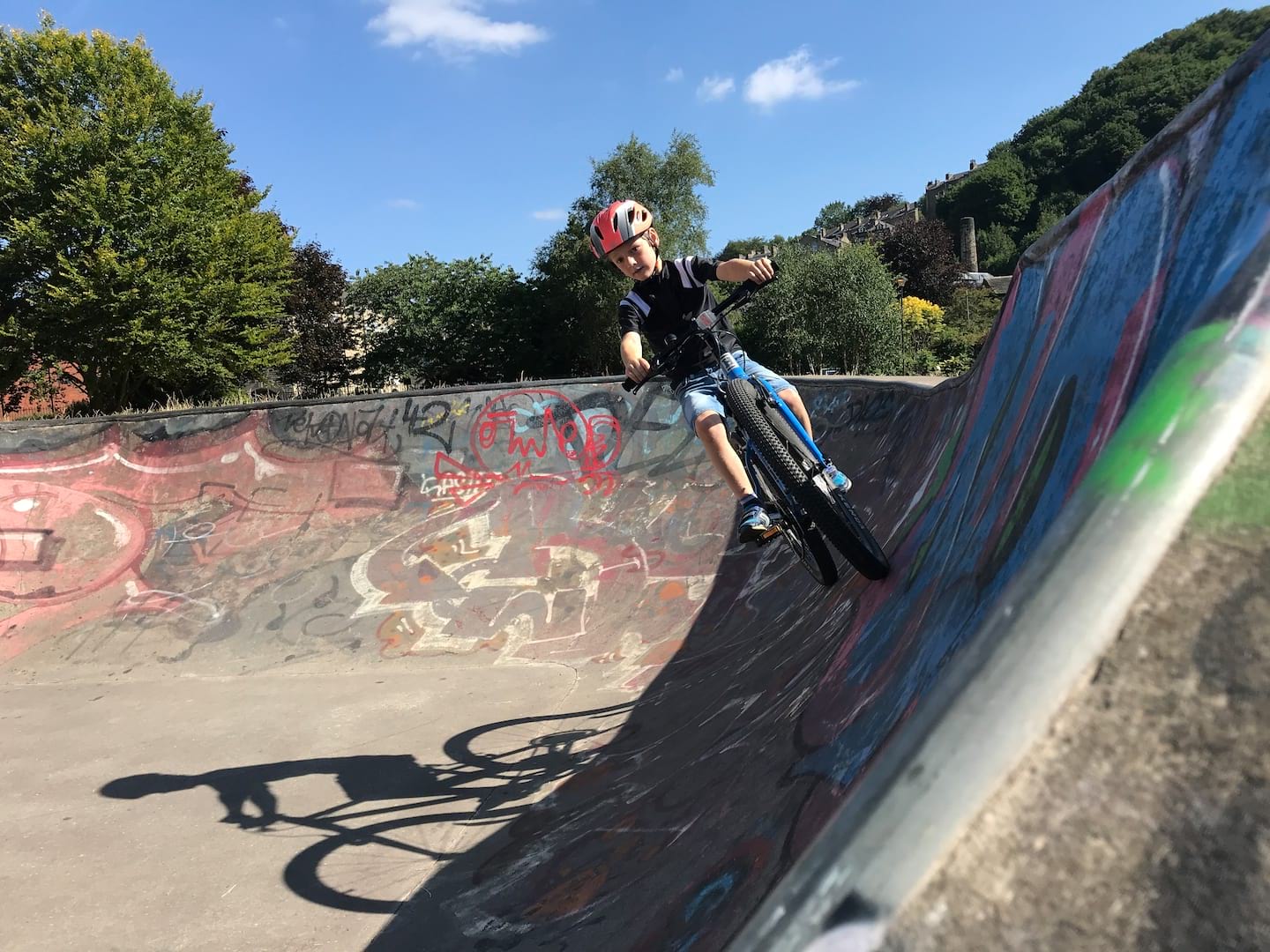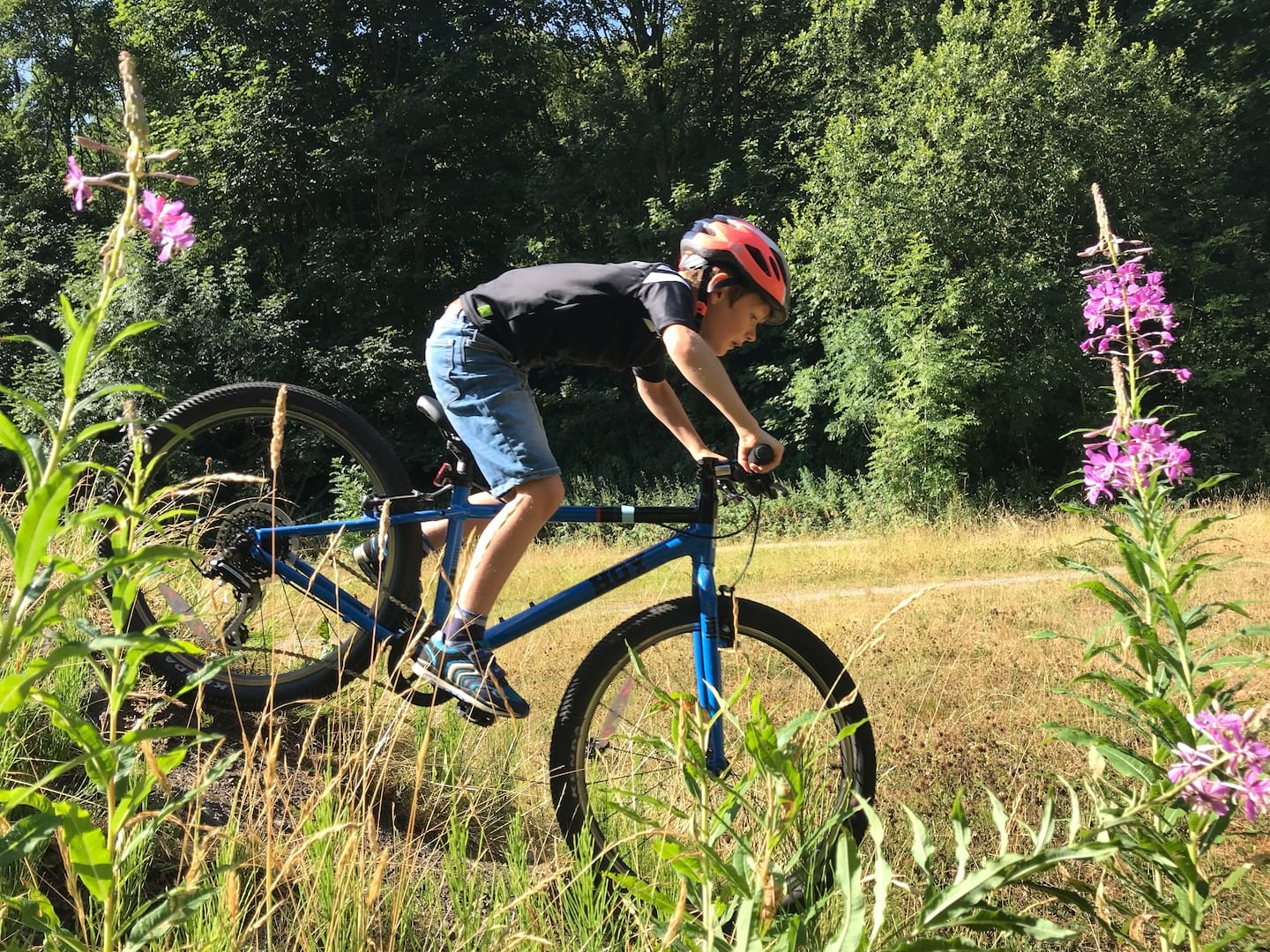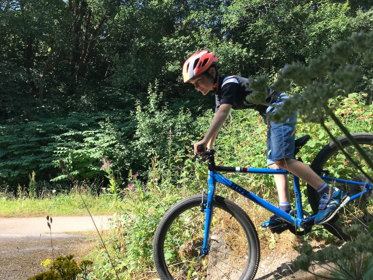 At 130cm tall and with a 52cm inside leg, Rafe was at the lower end of the height range for this bike, but – other than perhaps looking a little like a short XC rider on a 29er – he’s had no problems with fit. The brakes and thumb shift gears are easy to operate, his position on the bike is good, and there’s room to grow. It would be nice to have a quick release for easy swapping between children – but maybe it’s just us that often finds ourselves sharing a bike round a group of kids. After all, this is a nice looking bike that does attract attention.