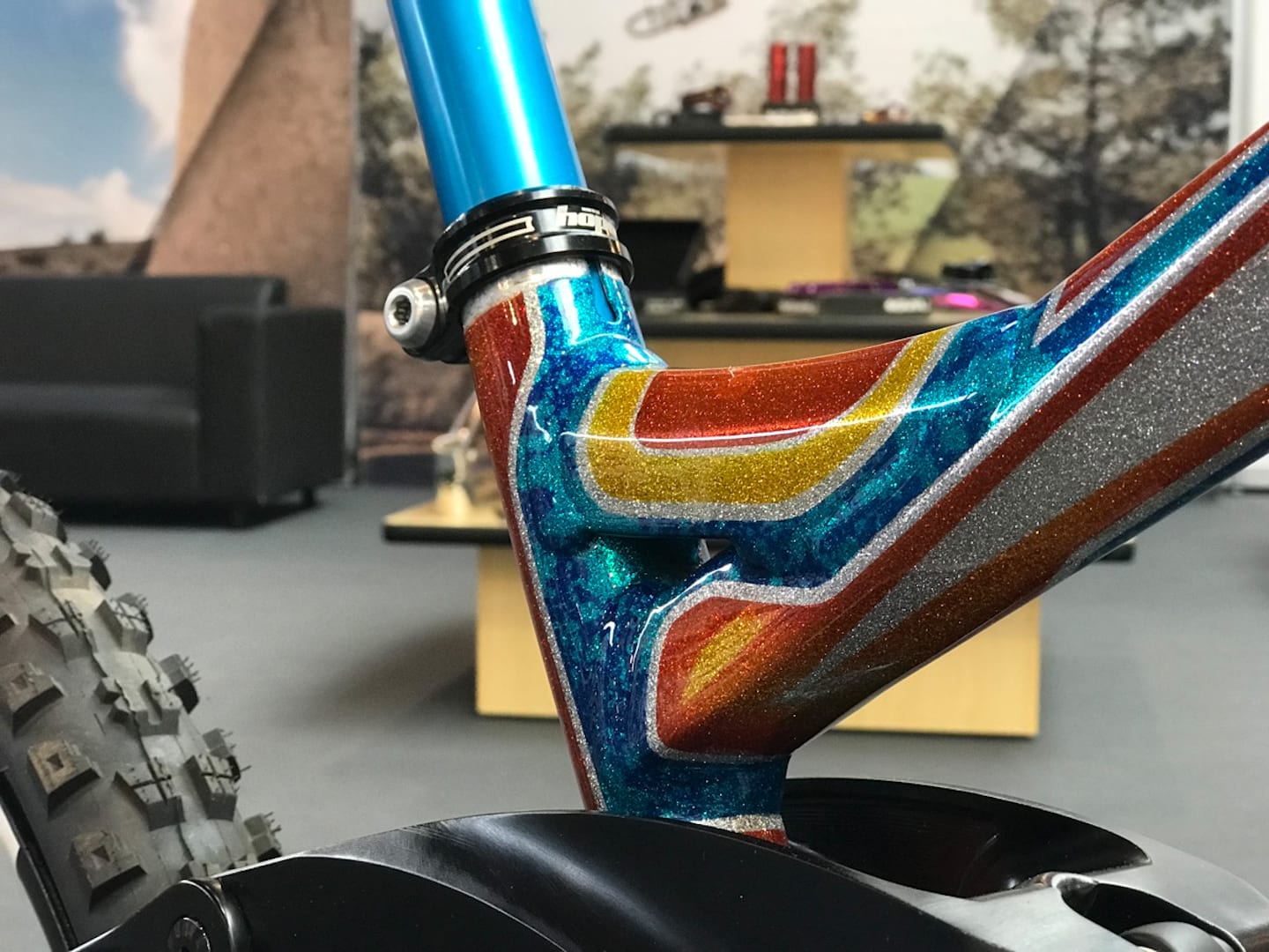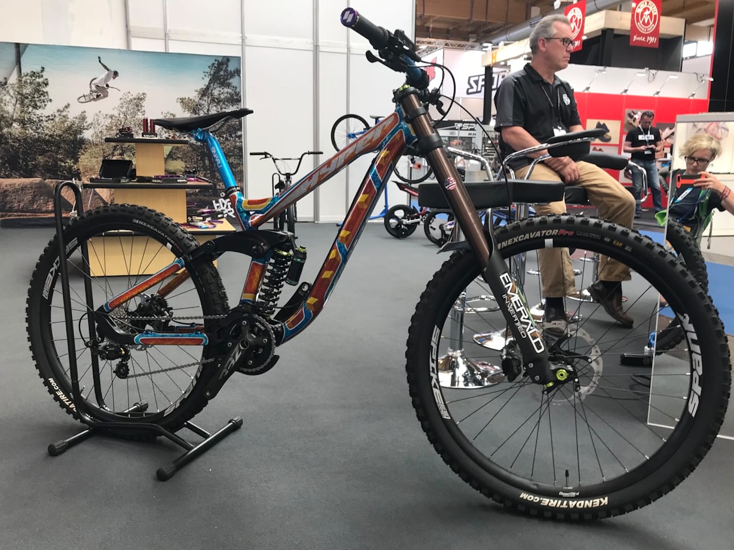 More super shiny glitz in the form of this blue peacock of a bike, again with all the DVO suspension – not something you’ll find in Walmart.