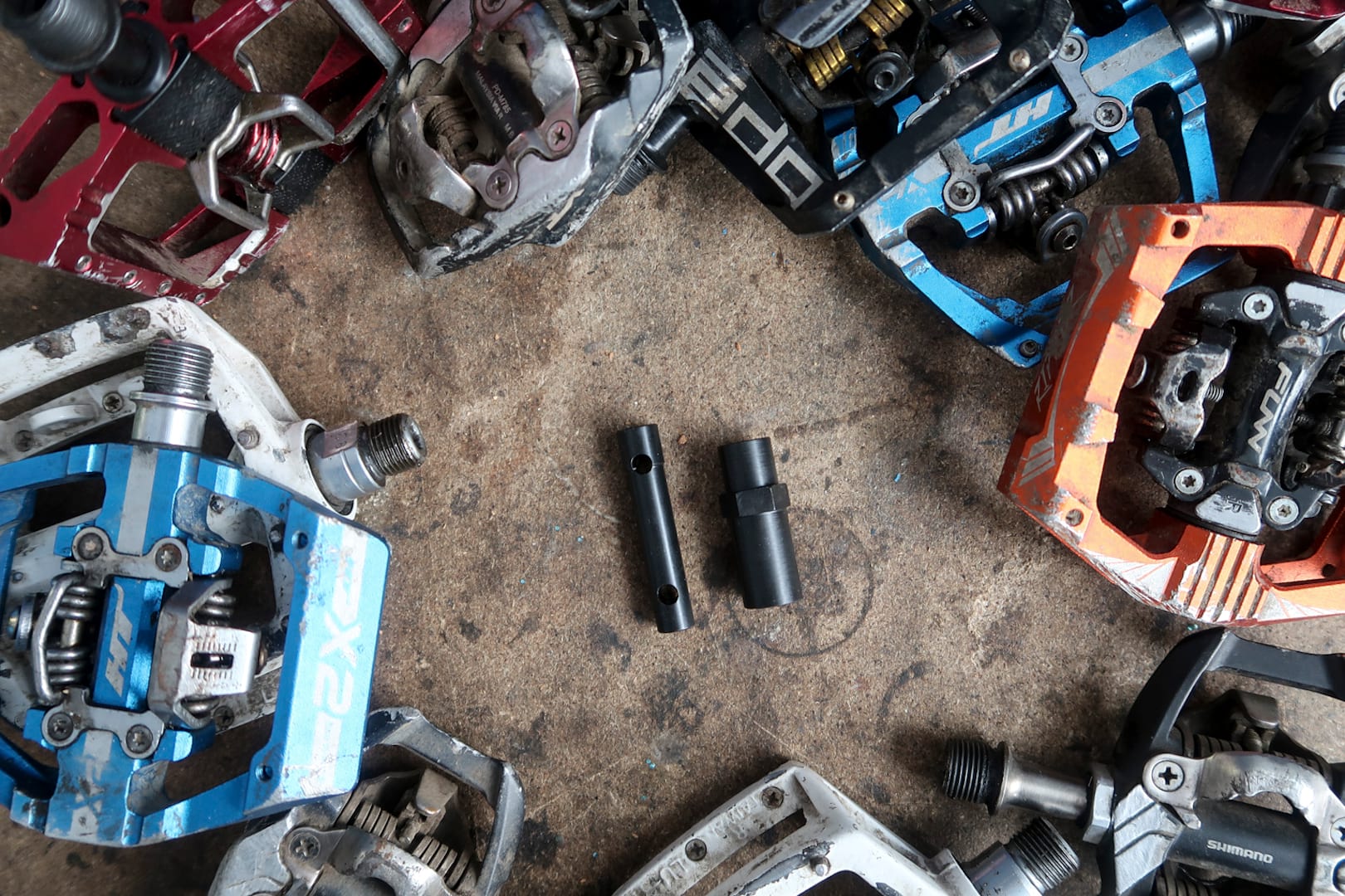 This little tool will let you get in and about the inner workings of your pedals so you can get them running smoothly again. One socket holds the adjusting cone, and the other tightens or loosens the locknut.