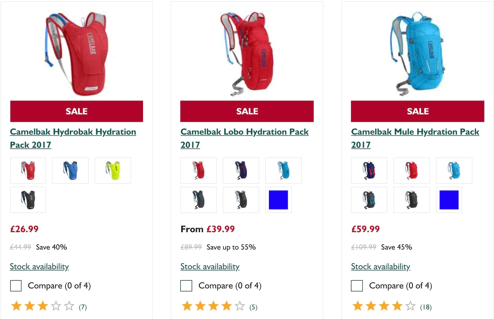 Evans has a bunch of great deals on Camelbak hydration packs starting with the Hydrobak at just £26.99 down from £44.99. This is a great little pack for short rides or for those of you who don’t like to carry too much with you. There are also great savings to be had on the larger Camelback Lobo, reduced to £39.99, and the bigger still Camelbak Mule now available at £59.99.