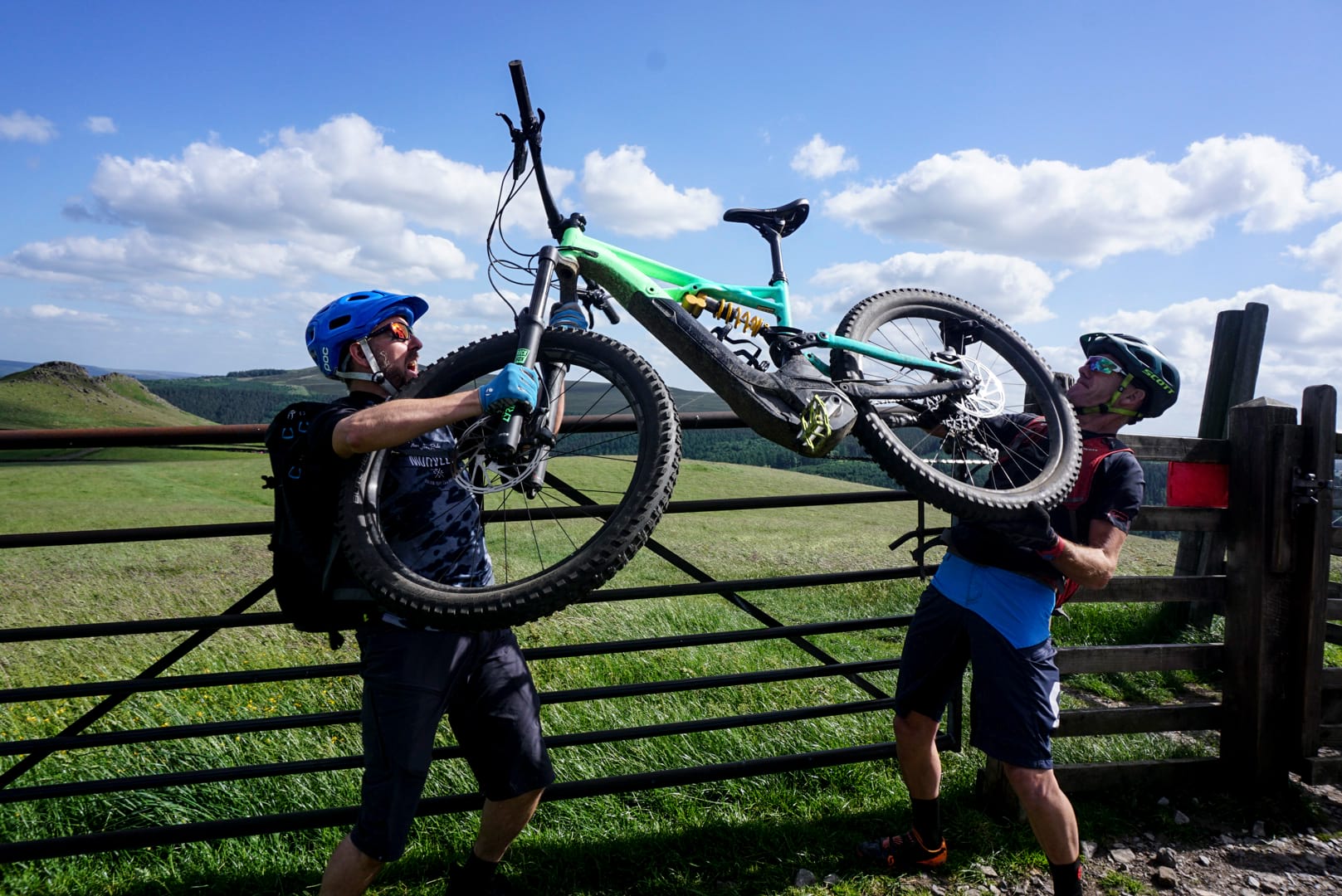 “Once more into the breach!” I shouted as I engaged hyperdrive. Within seconds, I was regretting my initial burst of speed. My pace slowed dramatically as I pinged from rock to rock, each loose babyhead being a wheel-trapper hiding in plain sight, ready to send me into oblivion. I was out of control and I swore for Scotland. “F##k!Sh#t!Ar#e!” Looking up was challenging to say the least as the much lauded at the time “direct steering to keep you feeling connected to the trail” made for a bit of a horror show. My tyres seemed to positively shrink in front of me. It was, to be frank, brutal. However, the further I got without impaling myself on the unforgiving gritstone, the more my confidence grew. I may have looked like a giraffe on roller skates, but I was still riding and still smiling. Finally reaching the safety of the tarmac road far below, I breathed a sigh of relief. I had made it! Turning around, my new-found hero status was tarnished somewhat as Nick and Mark practically floated down the trail far faster than I had managed. The bastards!