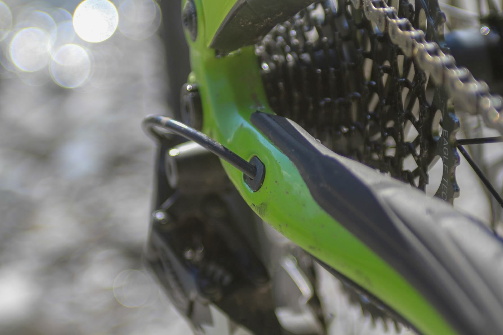 There is internal routing for gear cable, dropper cable/hose and brake hose. Clean ports at either side of the head tube hold cables and brake hose fast and keep things looking neat. The holes are fairly big and promise easy removal/install and there was no distracting noise from rattling cables whilst riding.