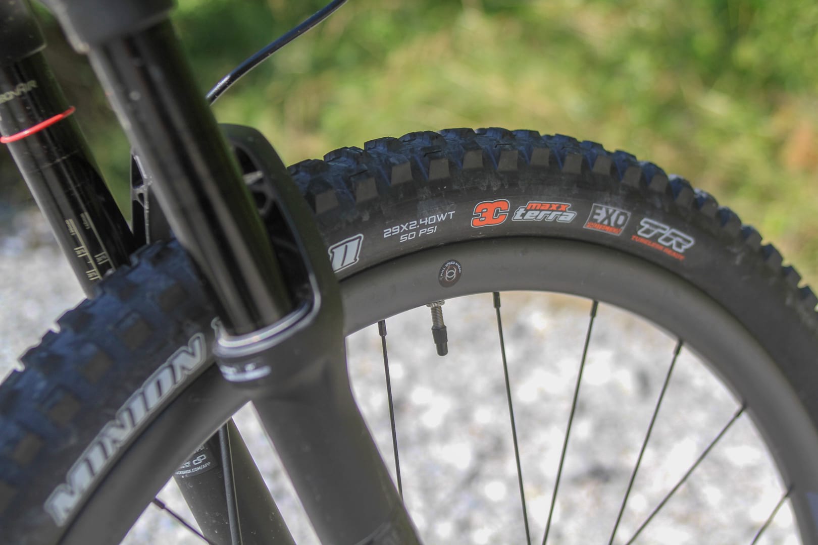 - Tyres //Â Maxxis DHR II Wide Trail, 2.4in Front & Maxxis Forekaster, 2.35in Rear, both Tubeless Ready
