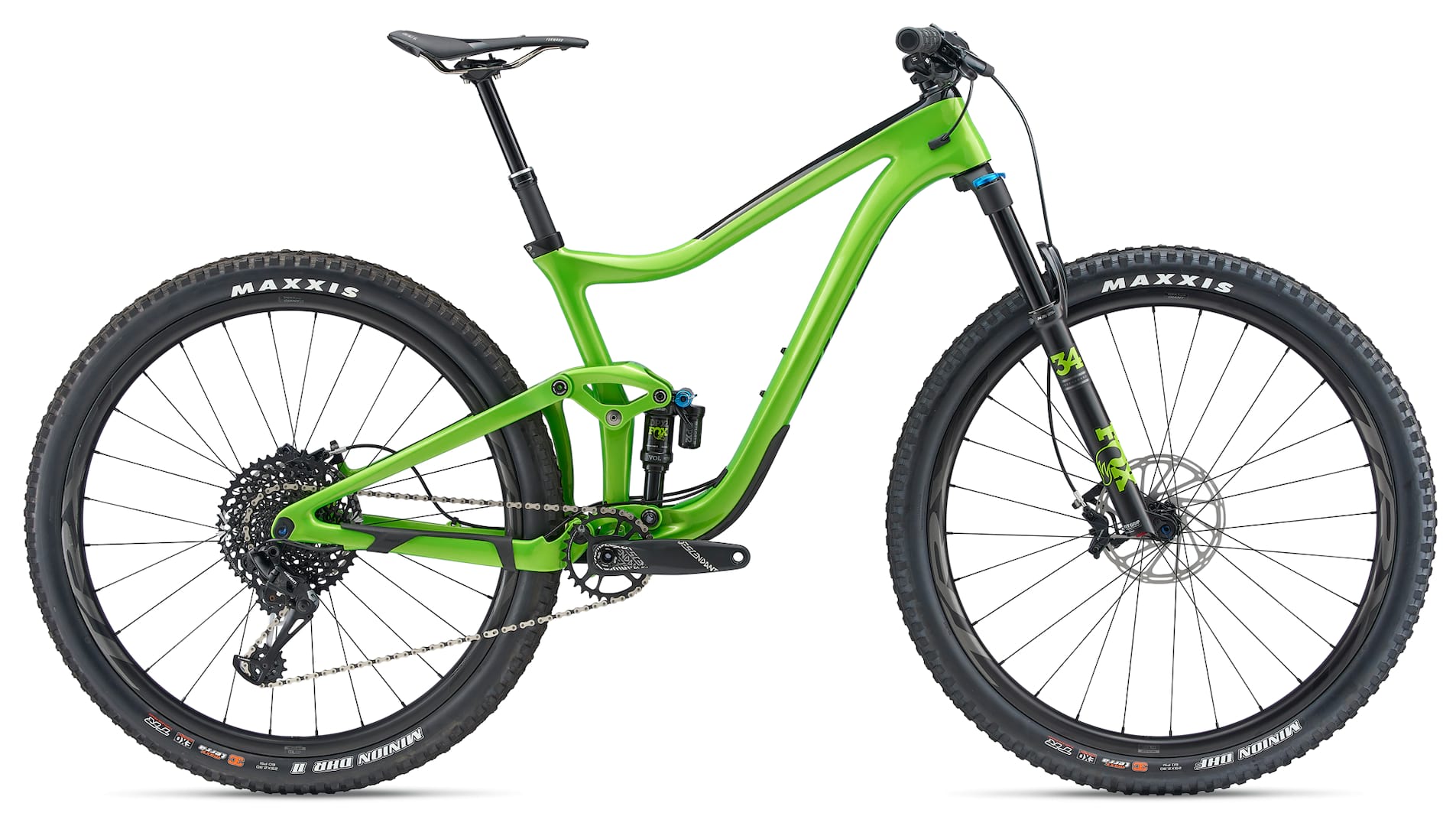 The Metallic Green / Carbon Trance Advanced Pro 29 1 uses the same Advanced-Grade Composite front and rear triangles as the top-of-the-range bike but is available in sizes small, medium, large and extra-large.