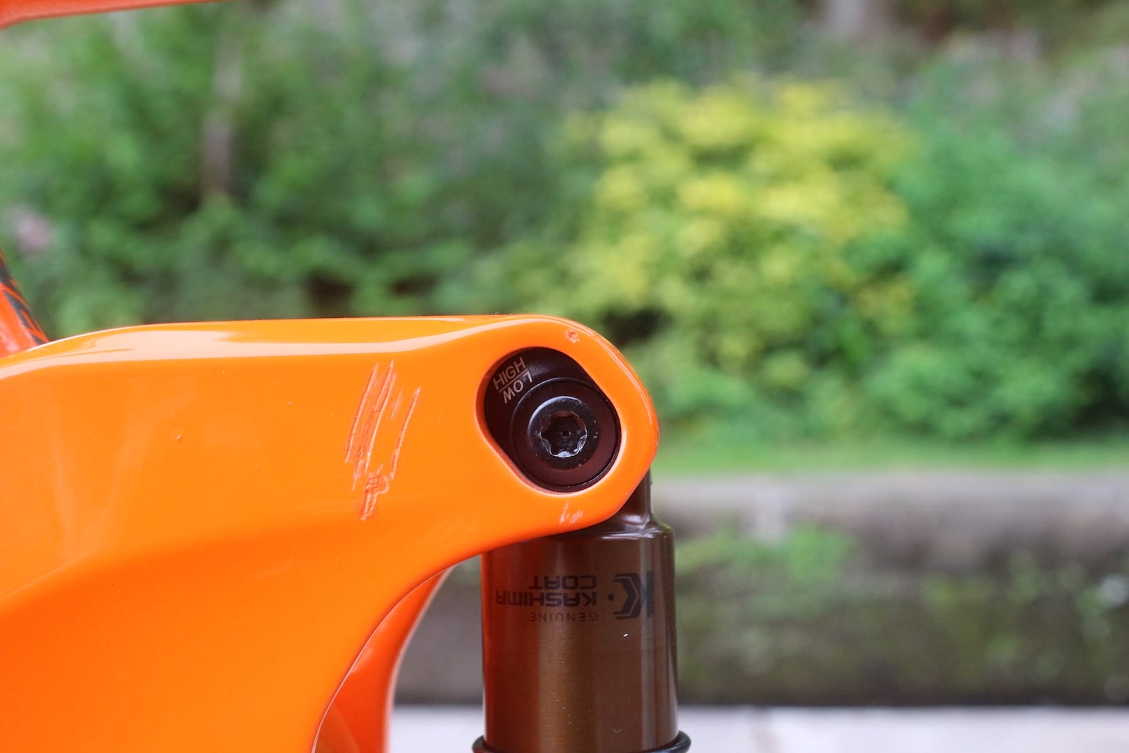 The Nude TR that comes on the top two Ransom models is distinguished by a small external lever on the shock body, which offers control of a third air chamber. Called ‘Ramp Control’, this lever opens or closes the air chamber to provide Linear and Progressive settings when you’re in the open Descend mode. The effect is similar to adding or removing volume spacers inside the shock’s air can, but now you can do it simply by flicking a lever. According to Scott, the Progressive setting is ideal for riding bikepark-type terrain with bigger jumps and faster hits, whereas the Linear setting is for tackling more natural-type trails where you want a smoother suspension feel for maximum grip.