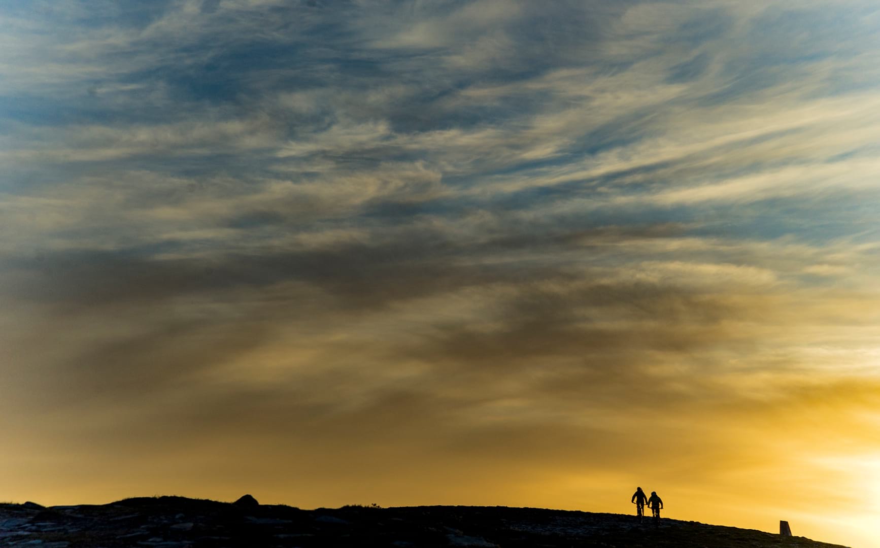 It’s here we lose the sun for the first time. We spend too long gazing at the emptiness of the sea surrounding us, mere miles from the hill. The curvature of the earth is easily visible from our vantage point, such is the expanse of sea ahead. We’re soon back riding, marching breathlessly up steep slopes to make the main ridge where the real views kick in. It’s hard not to linger, but we know fine well the summit vista will take our breath away.