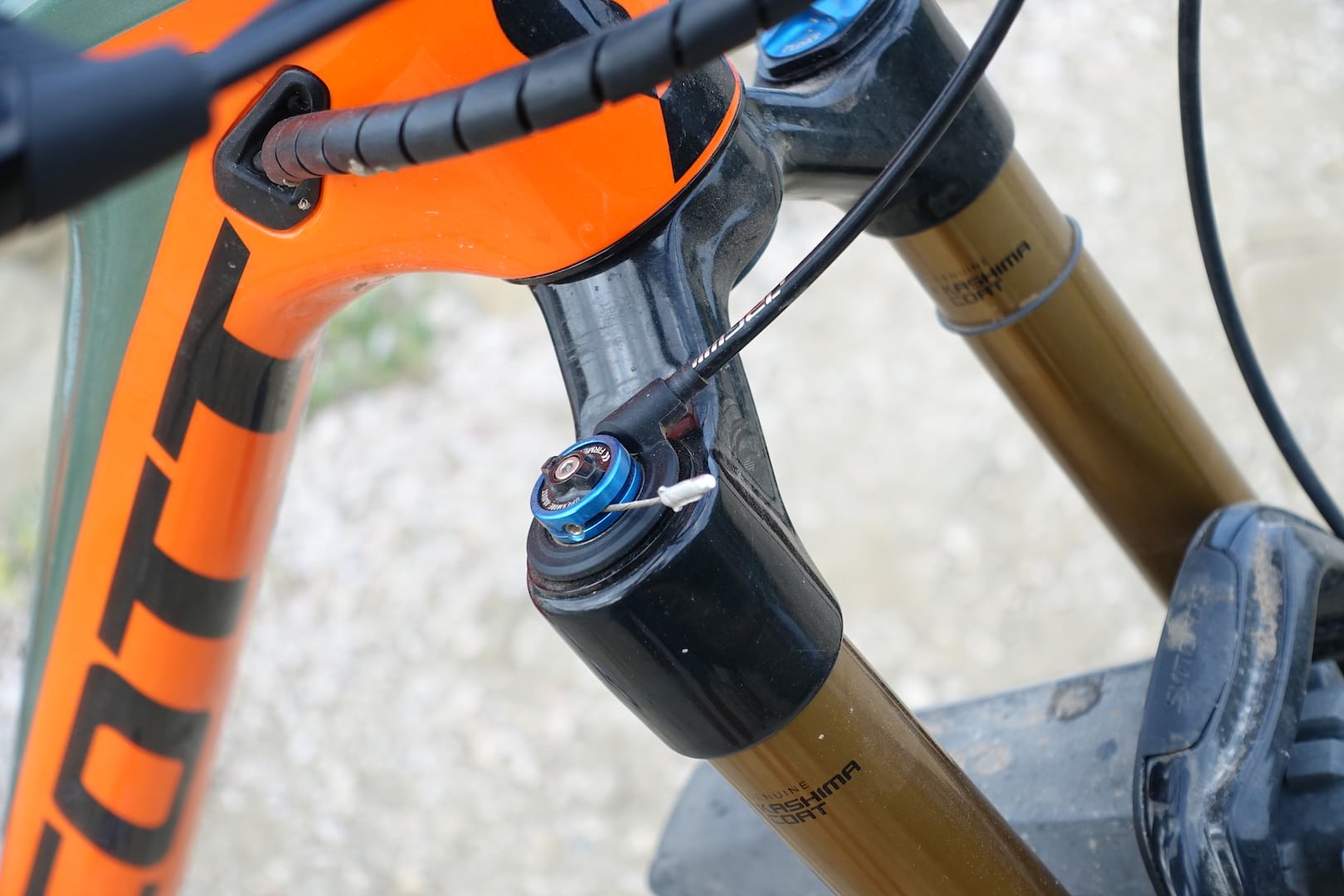 To keep the fork level on steep switchback corners, I dialled in the low-speed compression damping around halfway with 10-12 clicks, and set the rebound on the slower side with 6 clicks off fully closed.