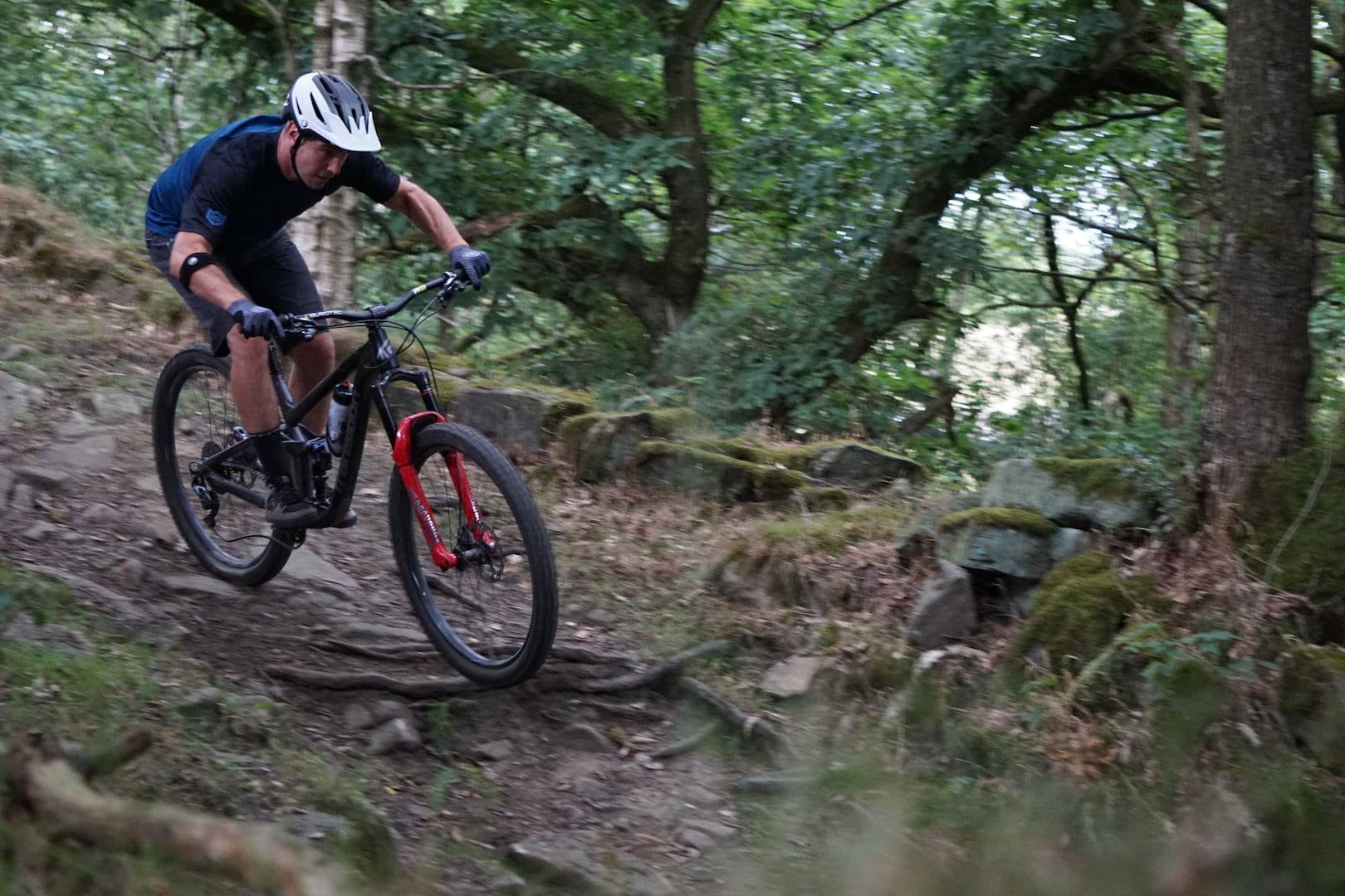 And since then it’s been amazing! My local riding, and the riding near the office, is a mixture of fast moorland descents and steep rutted woodland tracks, with the odd bit of rockiness thrown in. On the fast stuff the fork soaks everything up beautifully; taking rough trails in its stride and holding a line on fast corners, tracking precisely and letting you get off the brakes.
