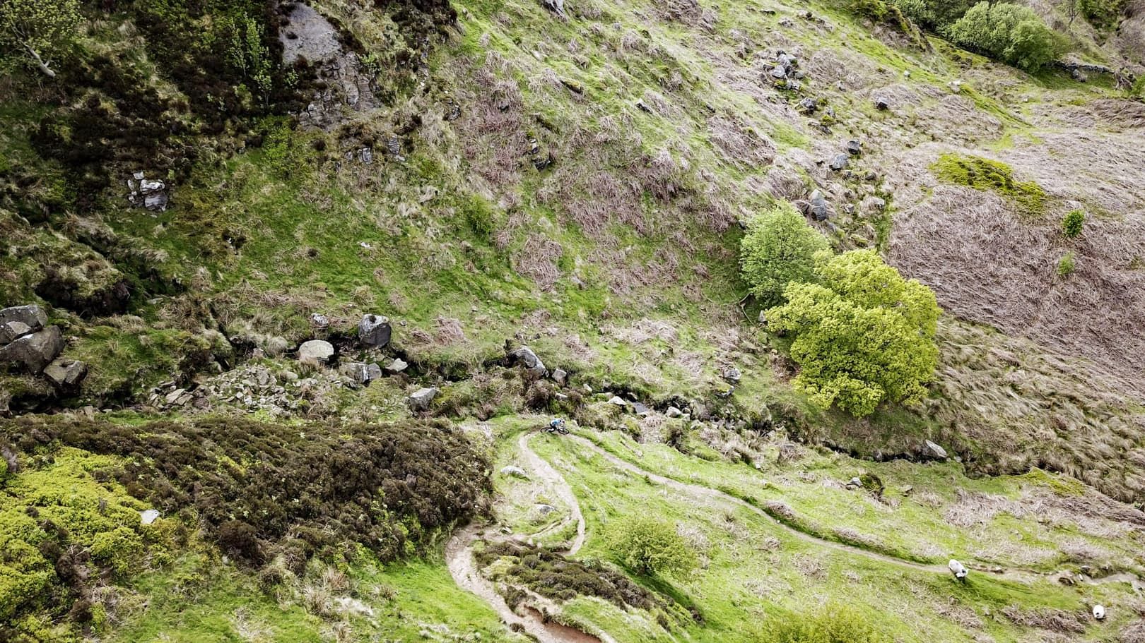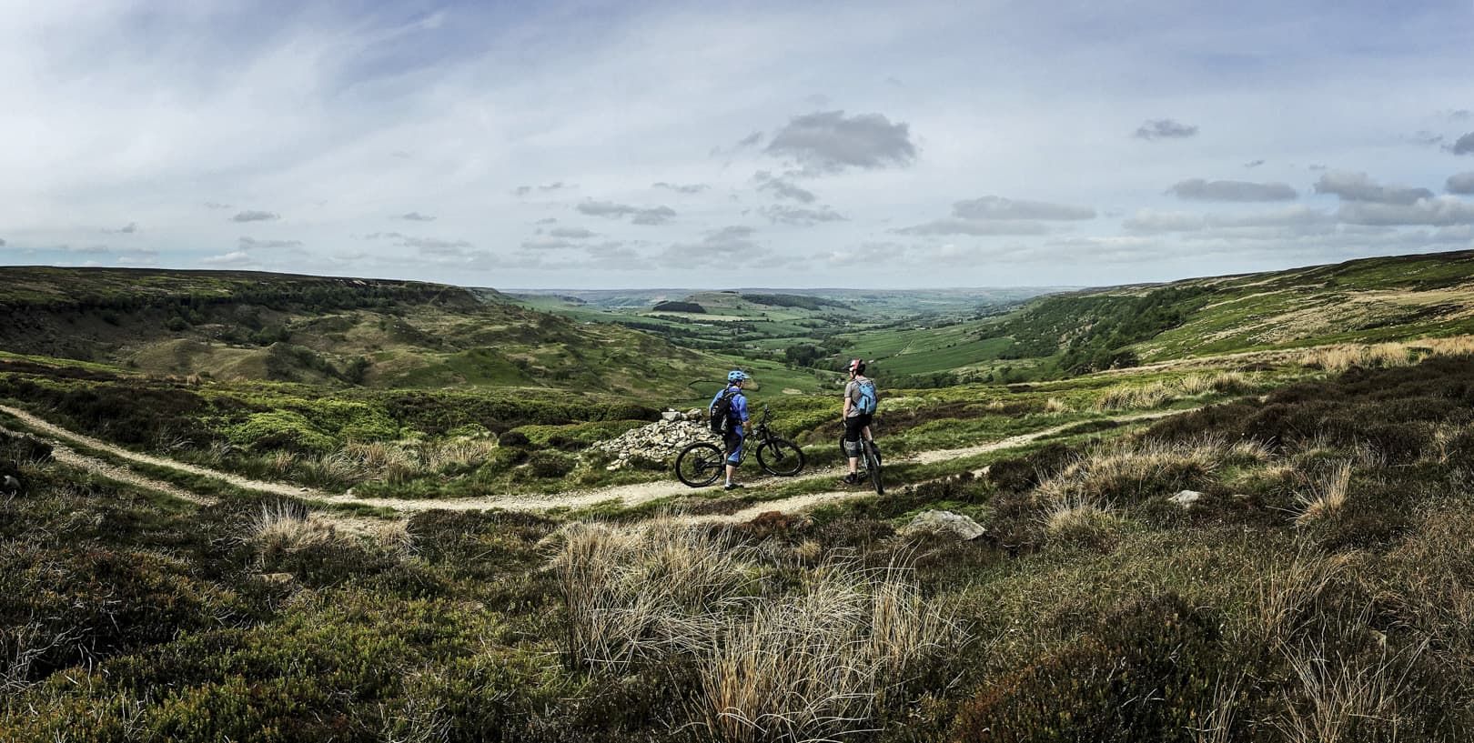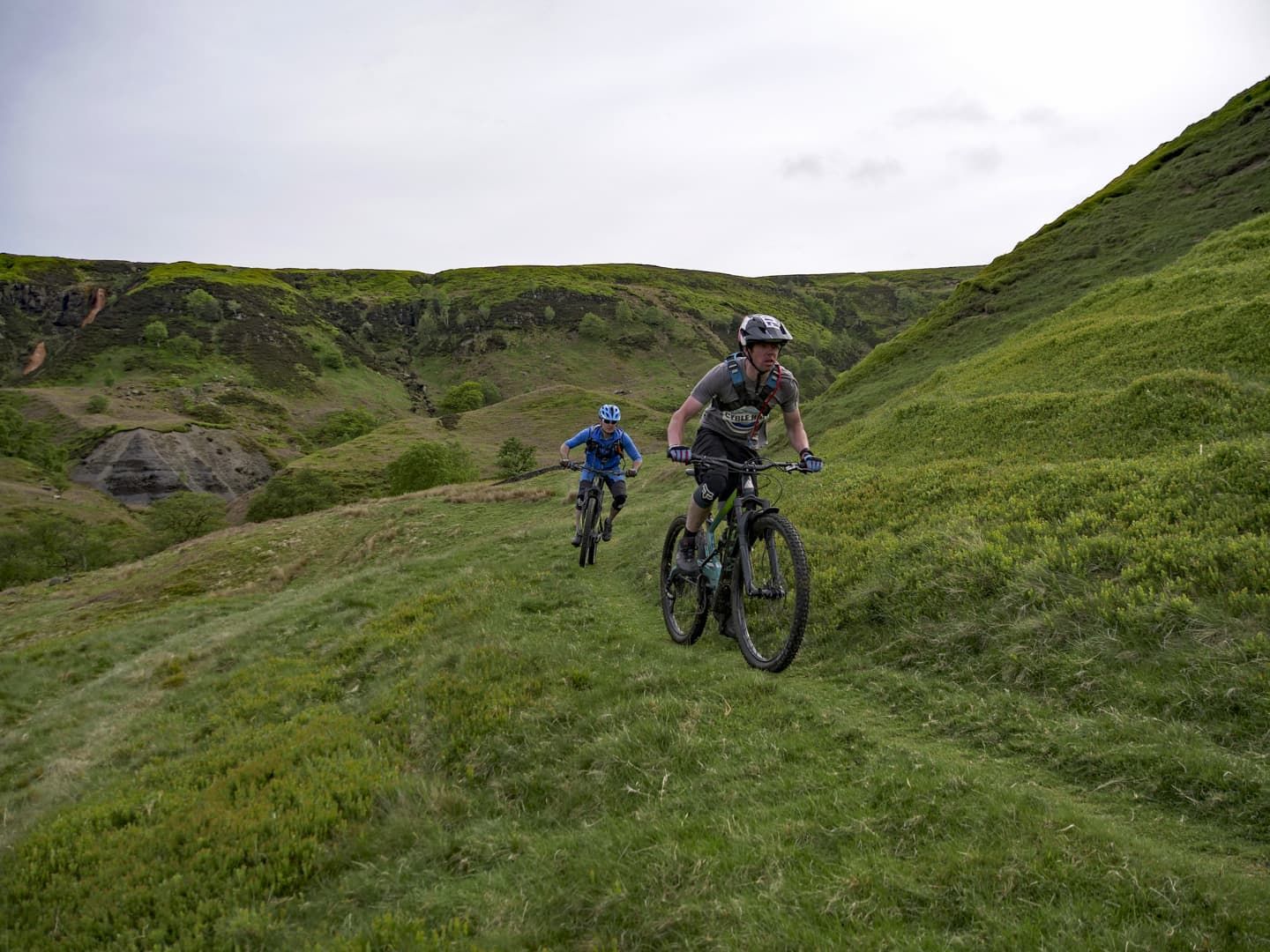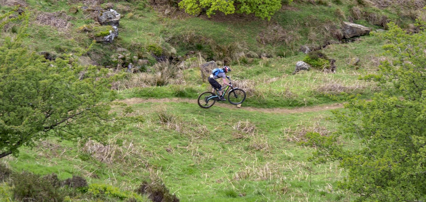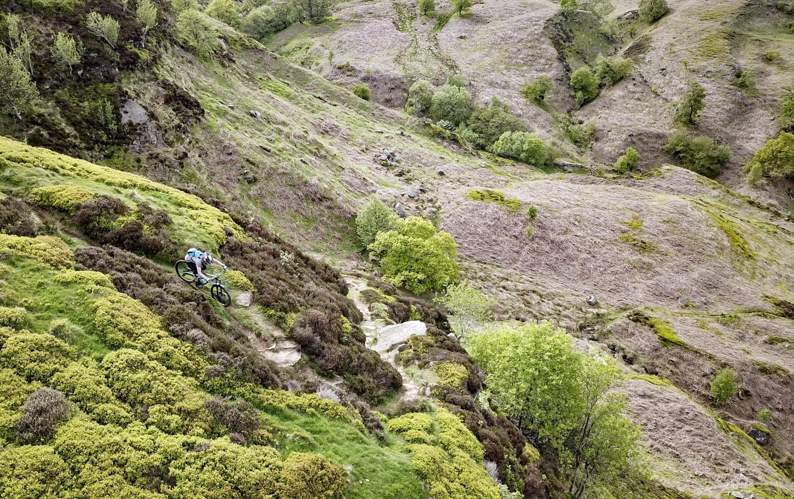 The view in front of us was stunning. Late afternoon sunshine was lighting up the wide glaciated valley, a vaguely discernible singletrack running down the left-hand side, weaving in and out of small interlocking spurs. It was like looking into a photograph in a dusty physical geography textbook. But although the view was textbook, actually riding the trail would prove to be somewhat more off-piste. I’ve known Mike for around a decade and he’s one of the most competent and bombproof riders I’ve ever met. He’s a professional mountain bike skills instructor and pays his mortgage by teaching people how to conquer their demons and ride smoothly and safely down trails that initially scare the hell out of them. So, for Mike to be nervous about riding a route was a new experience for me. With no prior knowledge of the trail, I was relying on Mike and Phil, local resident and co-owner of the nearby Yorkshire Cycle Hub, to give me a heads-up as to what I was about to let myself in for.