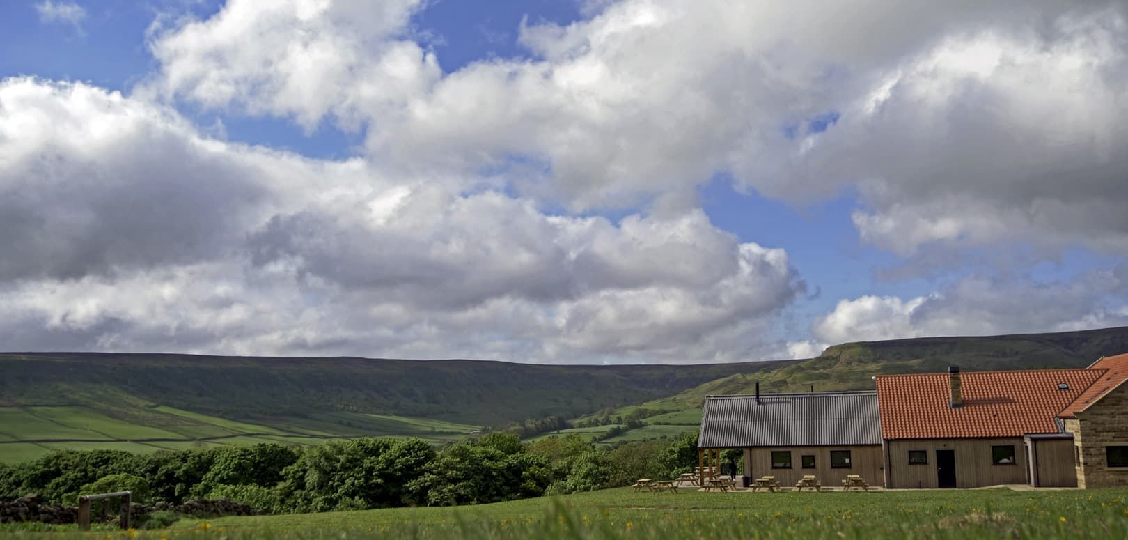 Our ride had started out somewhat more sedately that morning. Sunshine and blue skies were the order of the day and a golden early morning light filled the valley, highlighting the drystone walls and grass meadows that so typifies Yorkshire riding. We began the day properly with a coffee from Phil’s uber-coffee machine and a quick tour of the (relatively) newly opened Yorkshire Cycle Hub. It was obvious even as we drove down their driveway, why Phil and his wife Sarah had decided to build where they had. The cafe (with associated bike shop, accommodation and shower/changing rooms) is built on the site of an old farm. It’s a flat plot, high up on the side of a valley, their own private bit of forest to the left, farmland in front, and hills and moorland away to the right. From the large wooden deck outside the cafe, Phil pointed out the iron-stained scar that delineated the route of the waterfall away in the distance which we would ride close to at the end of our day. This was as close to perfect a spot as you could have hoped to find to build a cycling café. The fact that the local area is called Fryup Dale is the icing on the metaphorical cake.