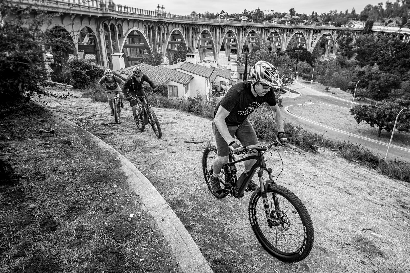We spent the night in Pasadena from where we started the next morning. Stage two would see us head towards Downtown LA on pedal-assist e-bikes. Missy and I were joined by Timmy C and Tony Z, a friend of mine from Laguna who inspired the urban stages of this trip and who has an incredible knowledge of all the neighbourhoods, parks, river deltas, staircases and shortcuts. It took a lot of research to find all these unique routes, tucked away through neighbourhoods, passing unique buildings and hidden sections of trails in between. Experiencing the contrasts of rich and poor, nature and urban development, history and culture.