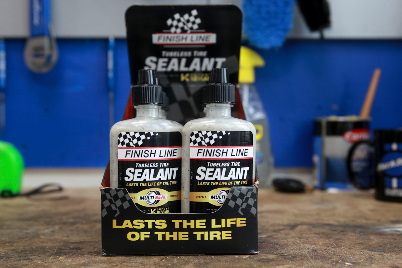 Finish Line tubeless sealant claims to never dry out, it’s latex free (brilliant! I’m allergic to latex, so I can actually try it) and it’s hypoallergenic, non-toxic with ‘FiberLink technology’ (where there are strands of tough Kevlar in the mix to plug holes). First impressions from a tire sealant noob – it’s quite runny and looks like an Oreo Milkshake. I can confirm it is NOT edible.