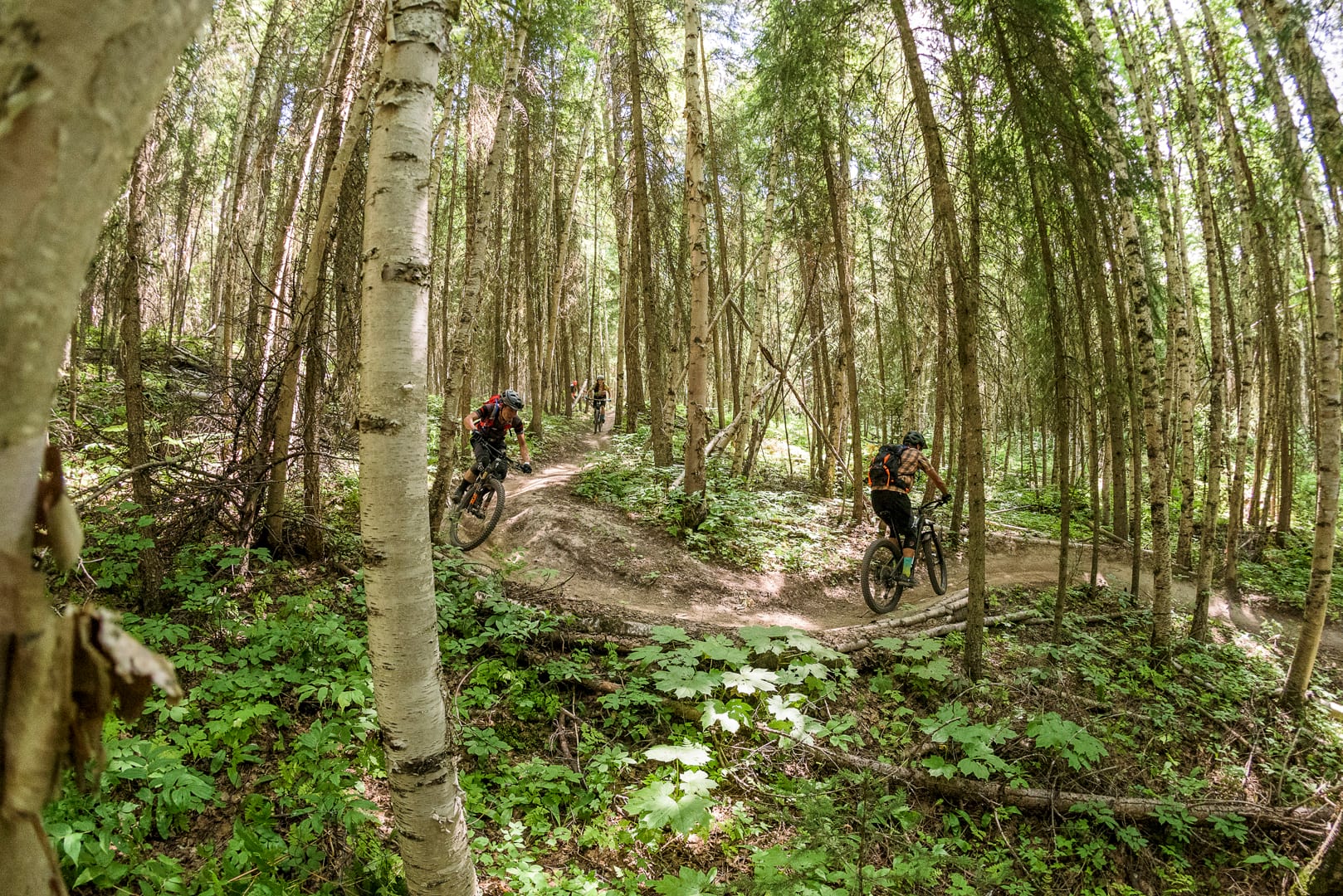 The inaugural BC Bike Ride North – a six-day, all-inclusive guided mountain bike tour through northern British Columbia – has come to an end. We’ve spent the last week riding pockets of hand-built singletrack across a vast distance of over 700 kilometres. Each town we’ve pulled into has been unassuming – mostly residential, with single-storey industrial buildings that sprawl along rivers or are centred around sawmills. But as we left each one, the uniqueness of the experience – the riding, the people, the vistas, and even the food – left imprints on us to last a lifetime. Now we’re relaxing and watching the ocean ripple through the reflection of the brightly coloured cabins that dot the shoreline as we process our memories of the last week and share our stories.