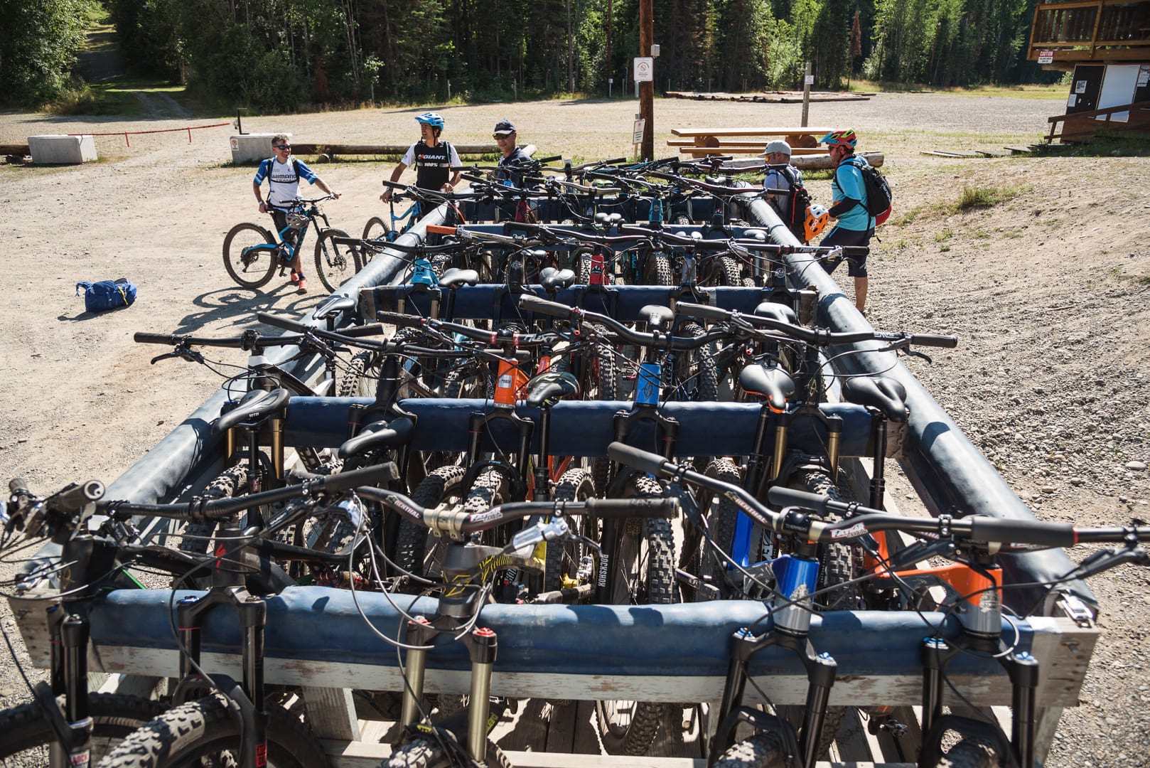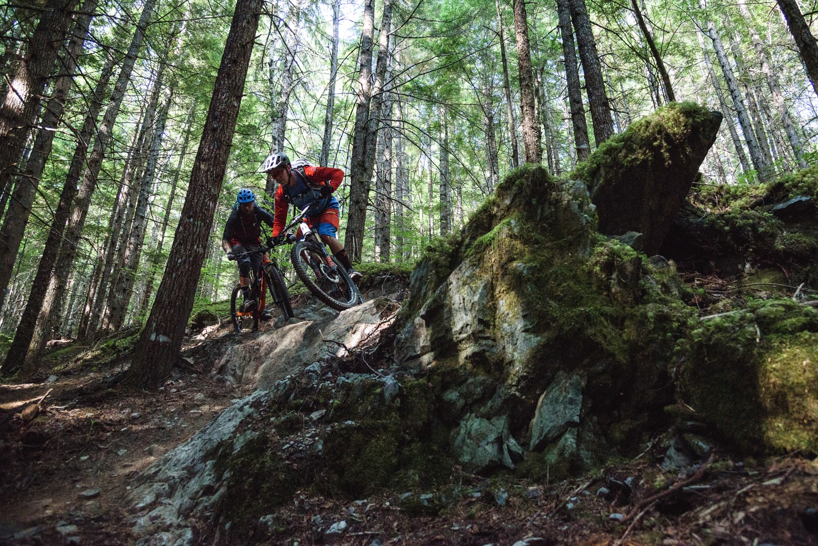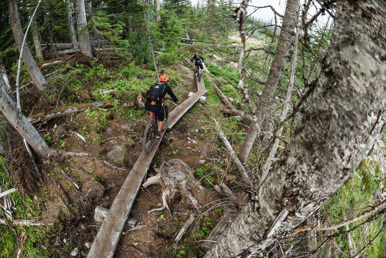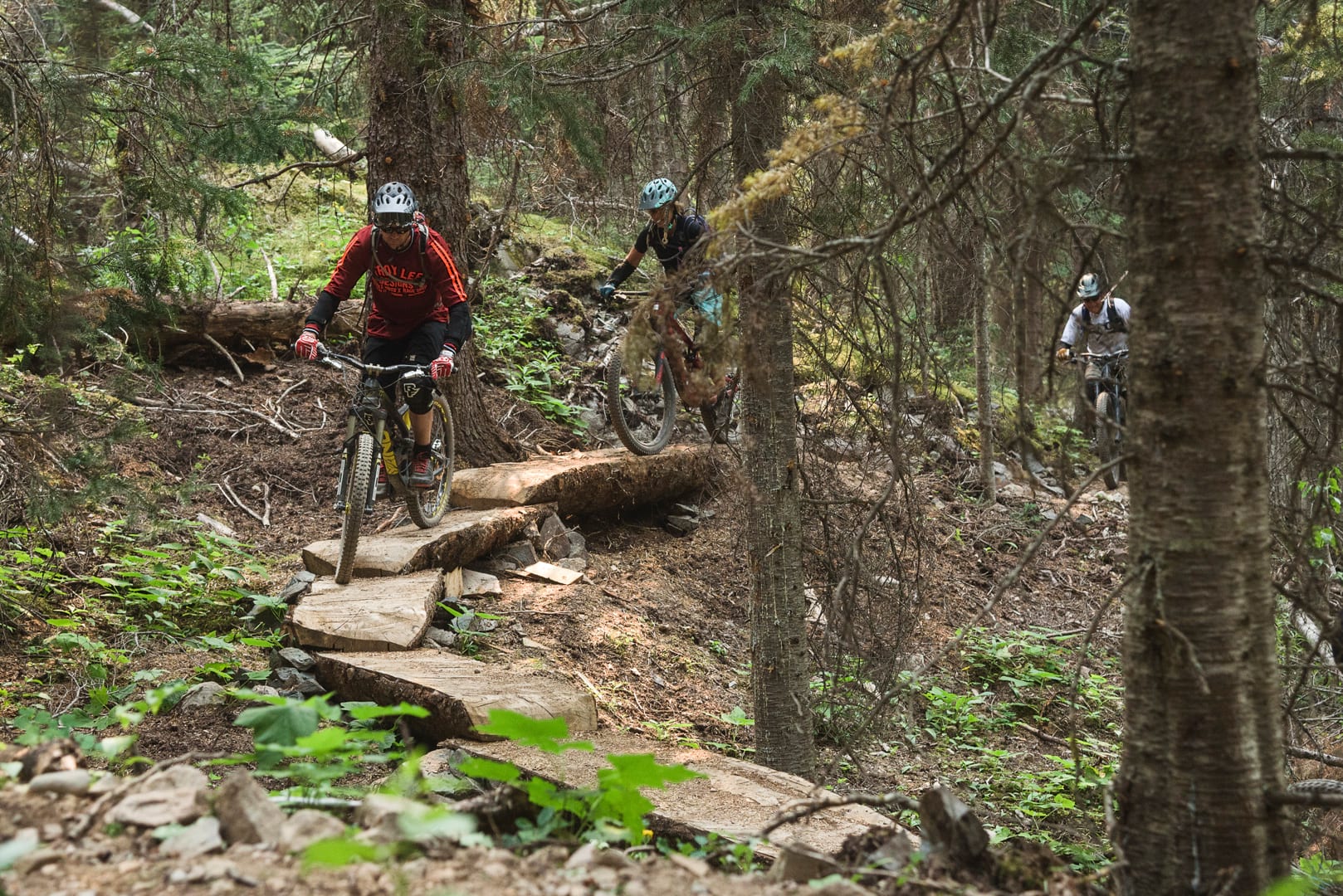 Once we returned to basecamp we were shuttled up Hudson’s Bay Mountain. At the top, advanced riders took the guided tour down Backdoor – a double black diamond ride with no ‘out’. The commitment started with loamy subalpine and wide open singletrack that made full use of the rolling terrain. As the trail got steeper, it also became more technical with roots and rocks that seemed to go on forever as it wound through the open of the ski runs and patches of trees that divided them. Strong riders could let off the brakes here and pick up speed to float through the rough sections, popping off little hits along the way. Finally we hit the forest at the bottom and the trail changed again, with loamy and impossibly fast sections with natural trail features broken up by steep chutes, tight corners, and a sprinkling of man-made senders for good measure. Adam, among others, loved it and he listed it as one of his all-time top five trails.