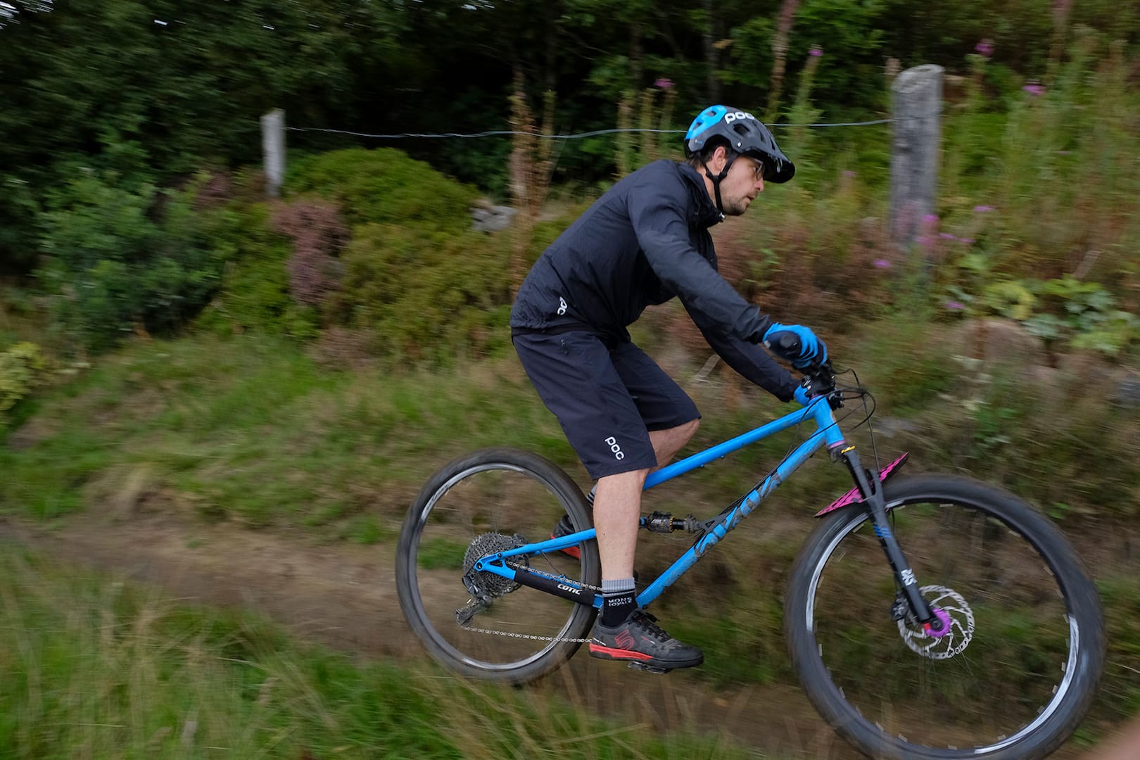 There’s ample clearance for 3in wide tyres. This may be a personal feeling but I found that, set up with 27.5 x 2.8in tyres, the ride height of the bike was too low for anything but smooth and wide trails. There’s also a vague feeling when loading the bike through corners, which was at odds with what is otherwise a focused-feeling bike. I very much preferred the more precise feel from the standard 29er wheels.