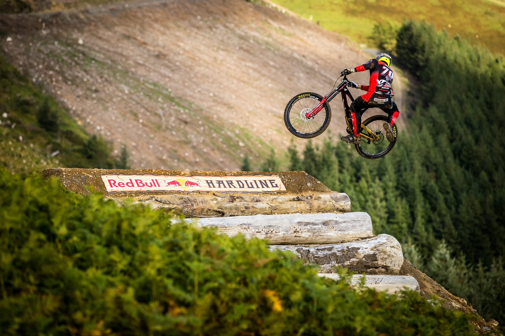 It’s Red Bull Hardline this weekend. As the name suggests, riders will be taking it in turns to swoop down a hillside on a trail punctuated by gaps which many of us would assume were whole sections of trail that had yet to be built. Drops, gaps, slabs, jumps – all on a scale that is a bit boggling to behold.