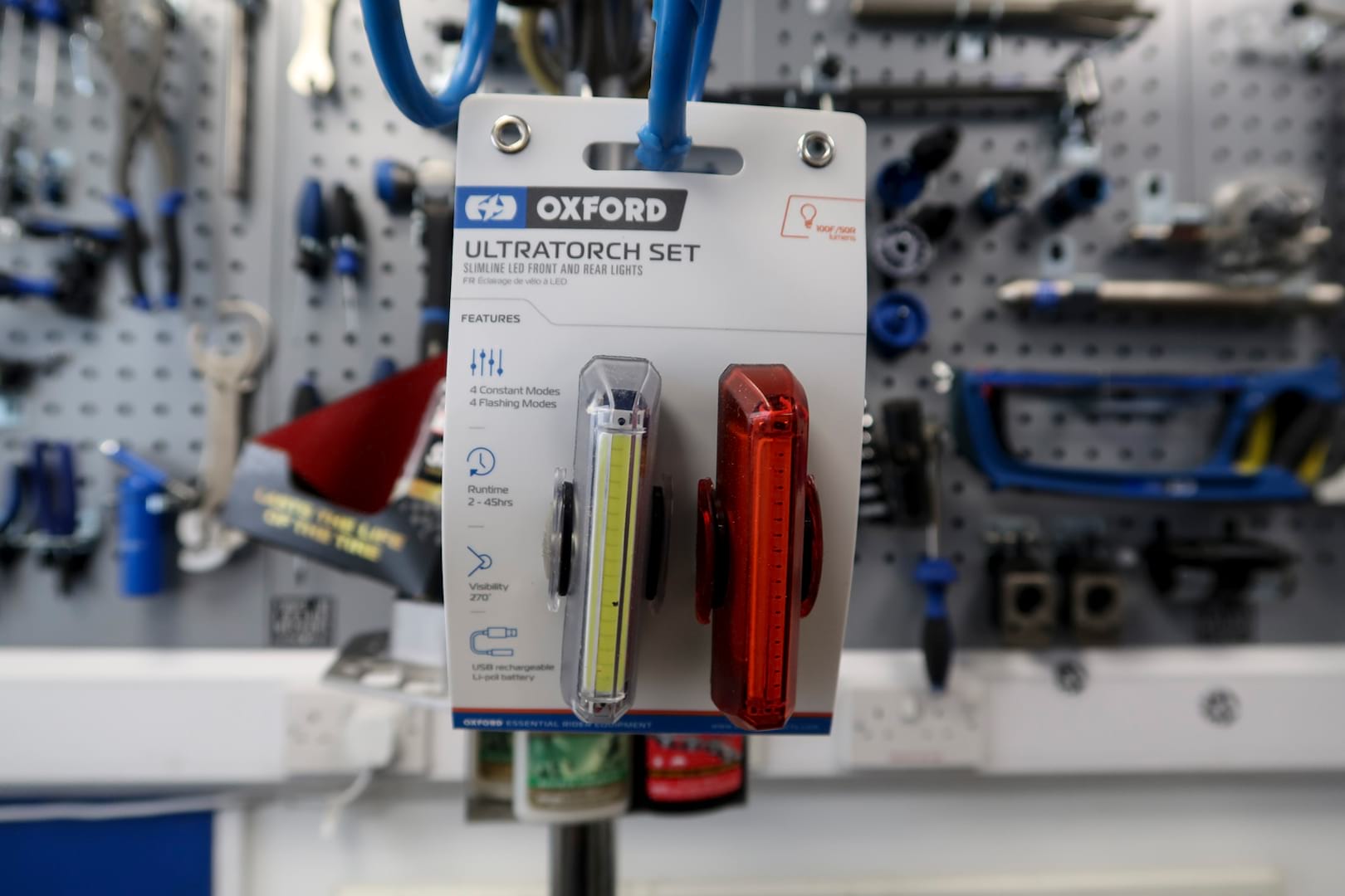 Slimline 100 lumen front light and 50 lumen rear light. This LED light set combines tool free fitting with a compact design, with an integrated tool free handlebar/seatpost fitting. The lights have USB rechargeable Li-ion batteries and a chip on board LED claims to give the lights great battery life.