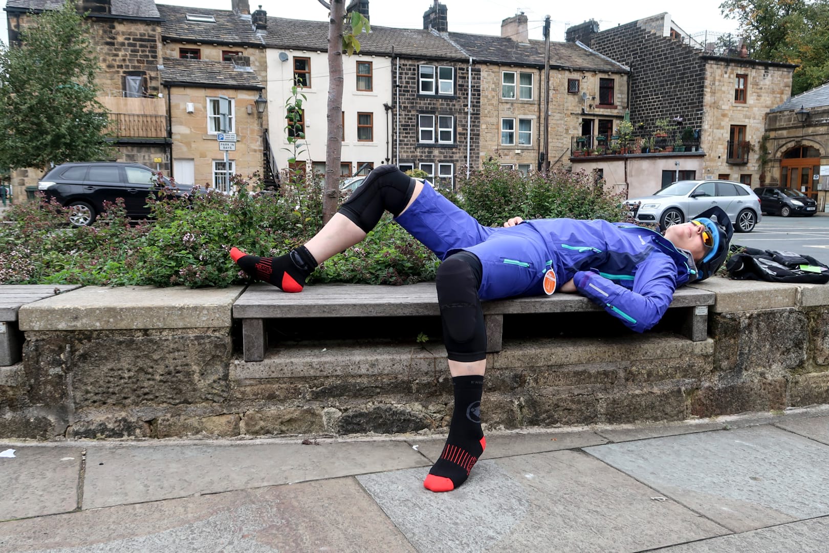 Extra warm insulated socks that are anatomically engineered for cycling. These have a long cuff for added warmth, and are apparently so comfortable they caused Beate to have a street nap.