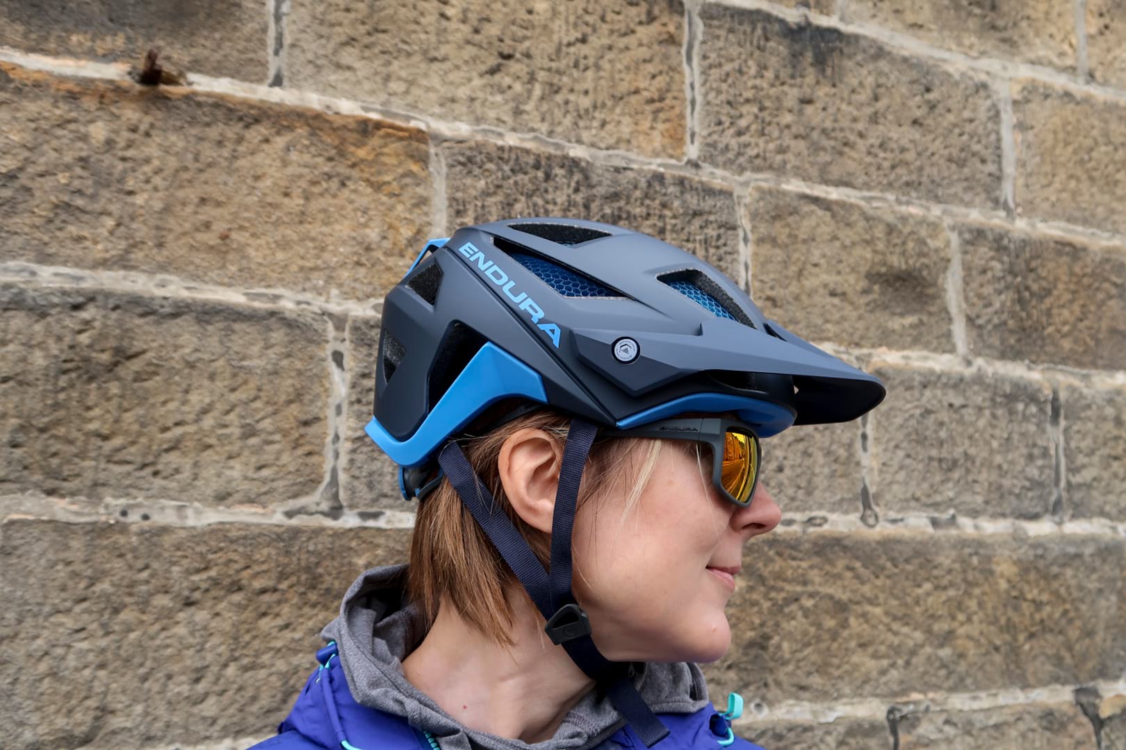 This high performance Enduro style mountain bike helmet features large vents including top “air intake” zone, a wide adjustment visor, and is available in white, mango, navy or black. The inner material is made from antibacterial, fast wicking spacer fabric padding and there’s adjustment at the back.