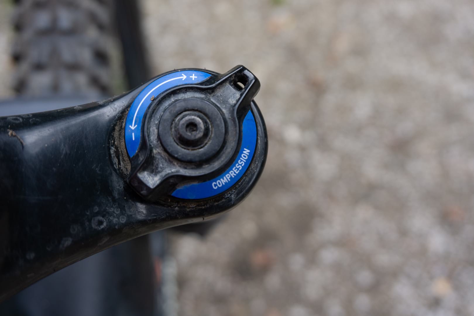 The Maxxis Minion on the front is an absolute classic tyre, and a firm favourite in Yorkshire for its all-conditions cornering ability. The Tomahawk on the rear though suffers from a lack of bite on the climbs, and squirmy sidewalls that rule out any attempt to compensate by dropping the pressure. It’s a bit of a shock when you get a less than great tyre on a test bike these days, and it came as a relief when early on in the testing, I put a tear in the sidewall and rolled it off the rim, which gave me the excuse needed to swap it.
