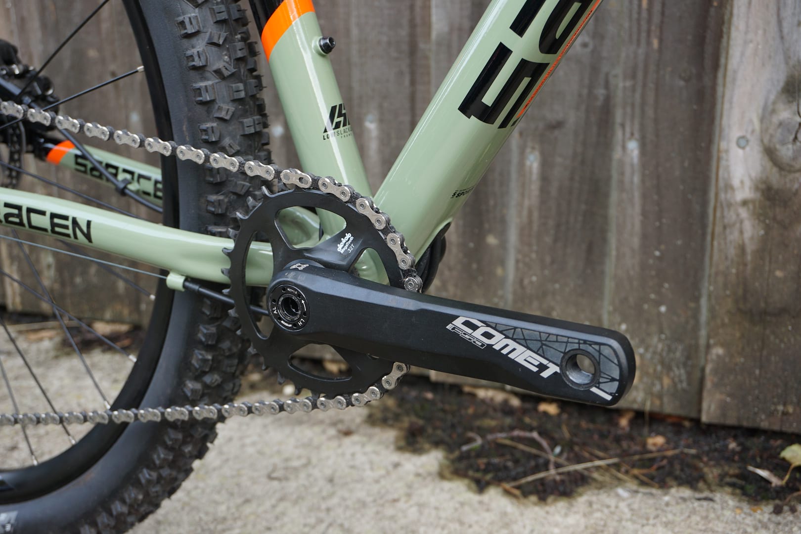 Braking is taken care of by a pair of Shimano MT400 brakes mounted onto Saracen’s own brand bars and stem.