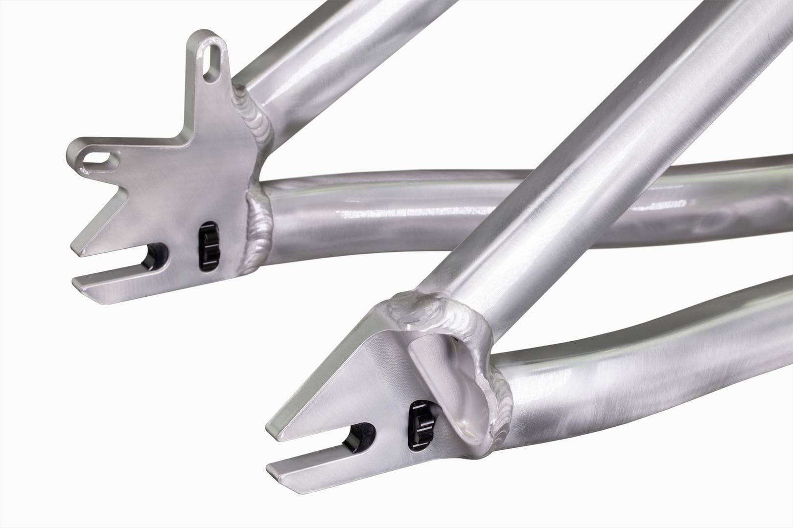 With this in mind, the Fade has been designed specifically for skateparks, dirt jumps, the pump track or street. The rear end features short 385mm chain stays with built-in CNC chain tensioners, there are no ISCG tabs, and there’s no rear-mech hanger, meaning single speed only.