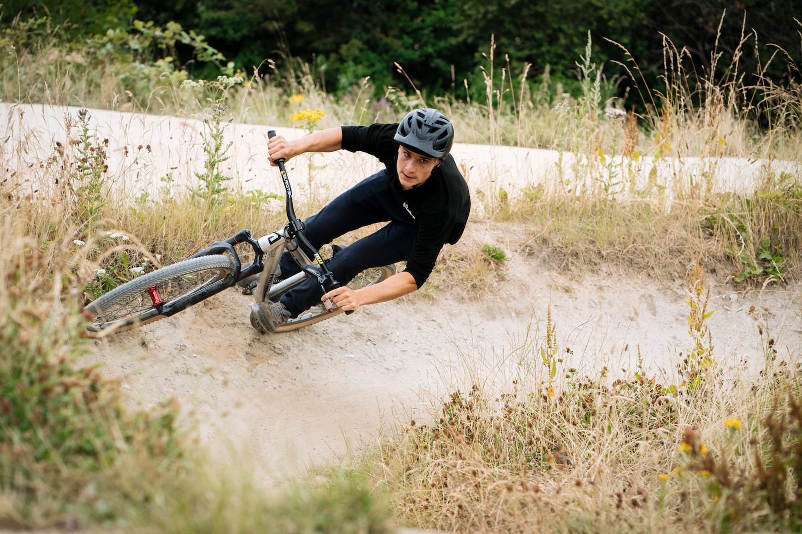 Airdrop has been quite clever with the Fade’s geometry and given the tiny jump bike a longer than average cockpit and reach number. At 430mm the reach is very generous, and Airdrop says that this has been done so that riders of progressive enduro bikes will feel right at home on the Fade out of the box.