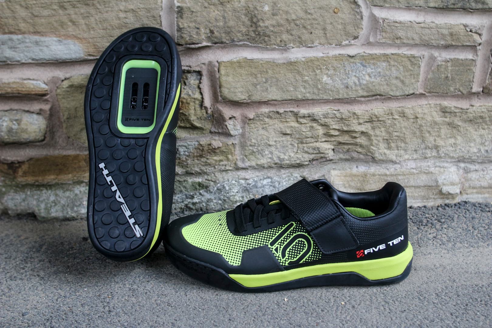 Five Ten also makes shoes for those riders who like to clip in. The Hellcat uses a Stealth C4 rubber sole which is said to offer great grip and ease of entry on clipless pedals. They feature laces with a velcro strap to keep them in place and, according to the brochure, boast a 3/4 dual-density TPU shank… not the prison type… but the vibration dampening type.