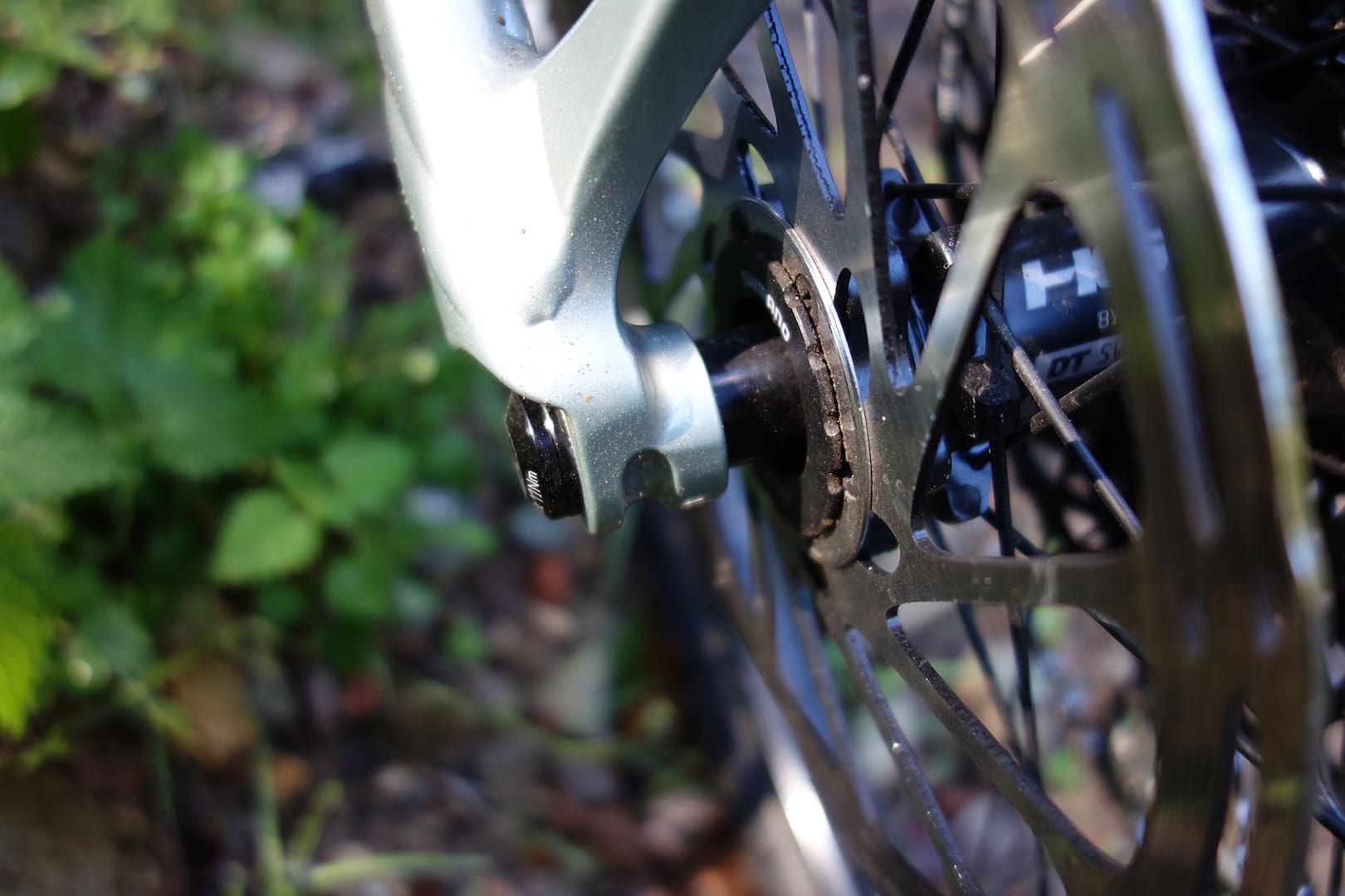 Anything else? Well, it’s still a press-fit BB shell, but apparently, Cannondale’s own cranks don’t work with anything else and our bikes seemed to be pretty creak-free for the day. Oh, and the rear brake rotor is a six bolt SRAM job, fitted to a Shimano six-bolt to Centre Lock adaptor on a DT Swiss Centre Lock rear hub. But the front rotor is a six bolt on a six bolt hub. Seems Cannondale really wanted to use its DT Swiss rear hubs and those only come in Centre Lock…