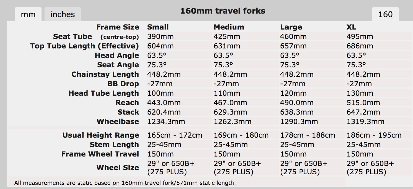- Optimised around 160mm forks.