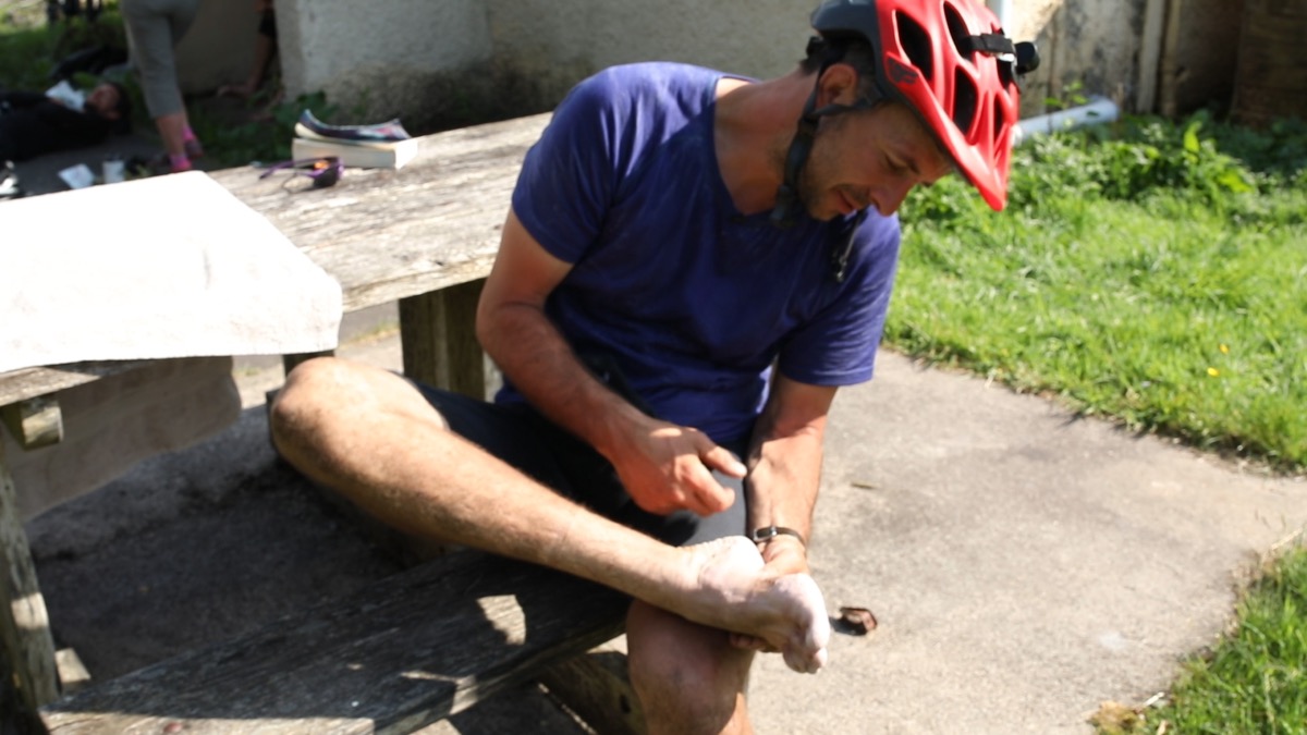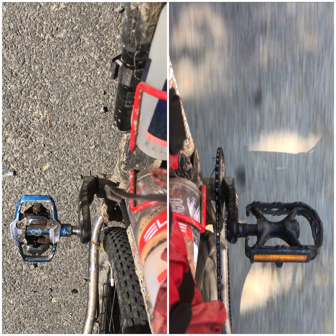 After approximately 700 miles, at around halfway, my pedal bearings collapsed, causing the pedal to come off leaving only the spindle. I ended up replacing it with a cheap plastic flat pedal from an old farmer’s bike, resulting in one foot clipped in and one not. Mentally knowing I was going to complete the event made me embrace this and more determined to use it as a challenge – can I ride 700 miles one foot clipped in one not? I did!