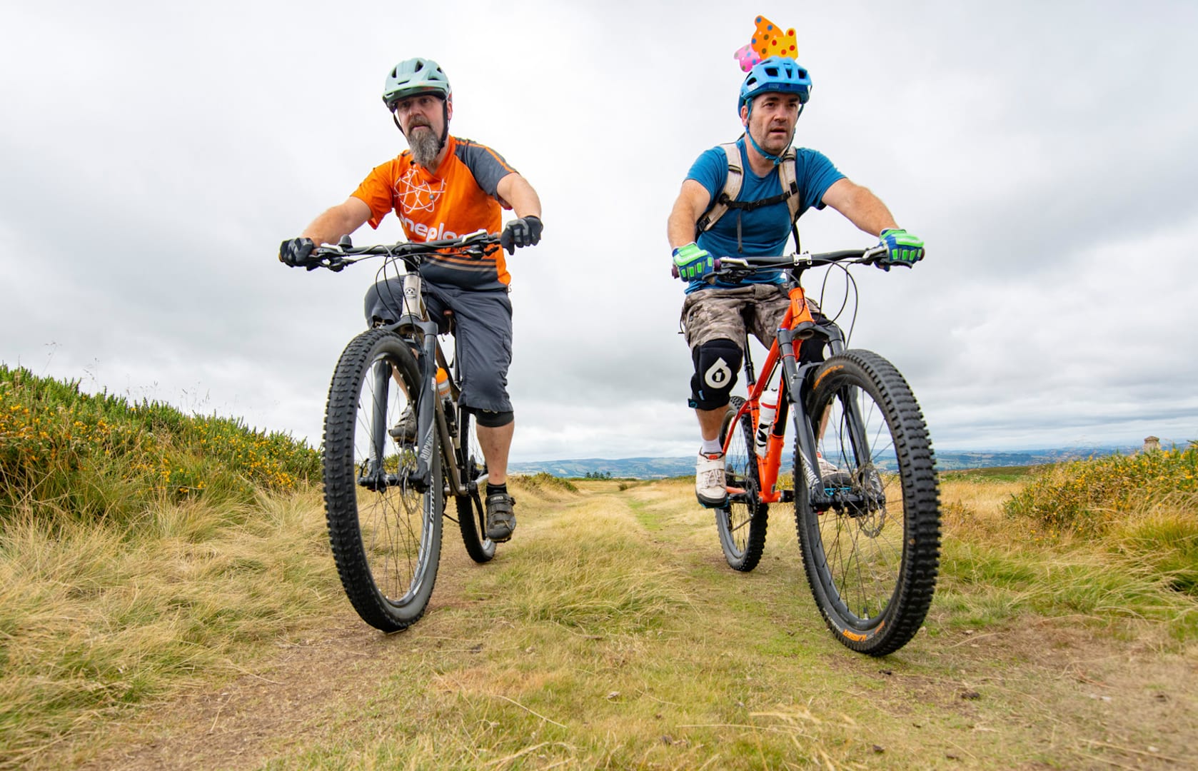 We carried on, following the trail along the ley line across the hill for a mile or two. People who are versed in such things (and who carry wands of birch or copper, natch) seem to state that they can sometimes feel a ‘fizzing’ sensation as they travel along, or cross, or commune with ley lines. We experienced great views to be sure, but I’m afraid that in the moment there were too many other things assaulting our senses to figure out whether we were fizzing because of any magical energy lines or merely the fact that riding bikes is ace. But, somewhat expectedly, energy levels and enthusiasm seemed to diminish when we rode uphill and mysteriously increased again when we rode downhill. Amazing.