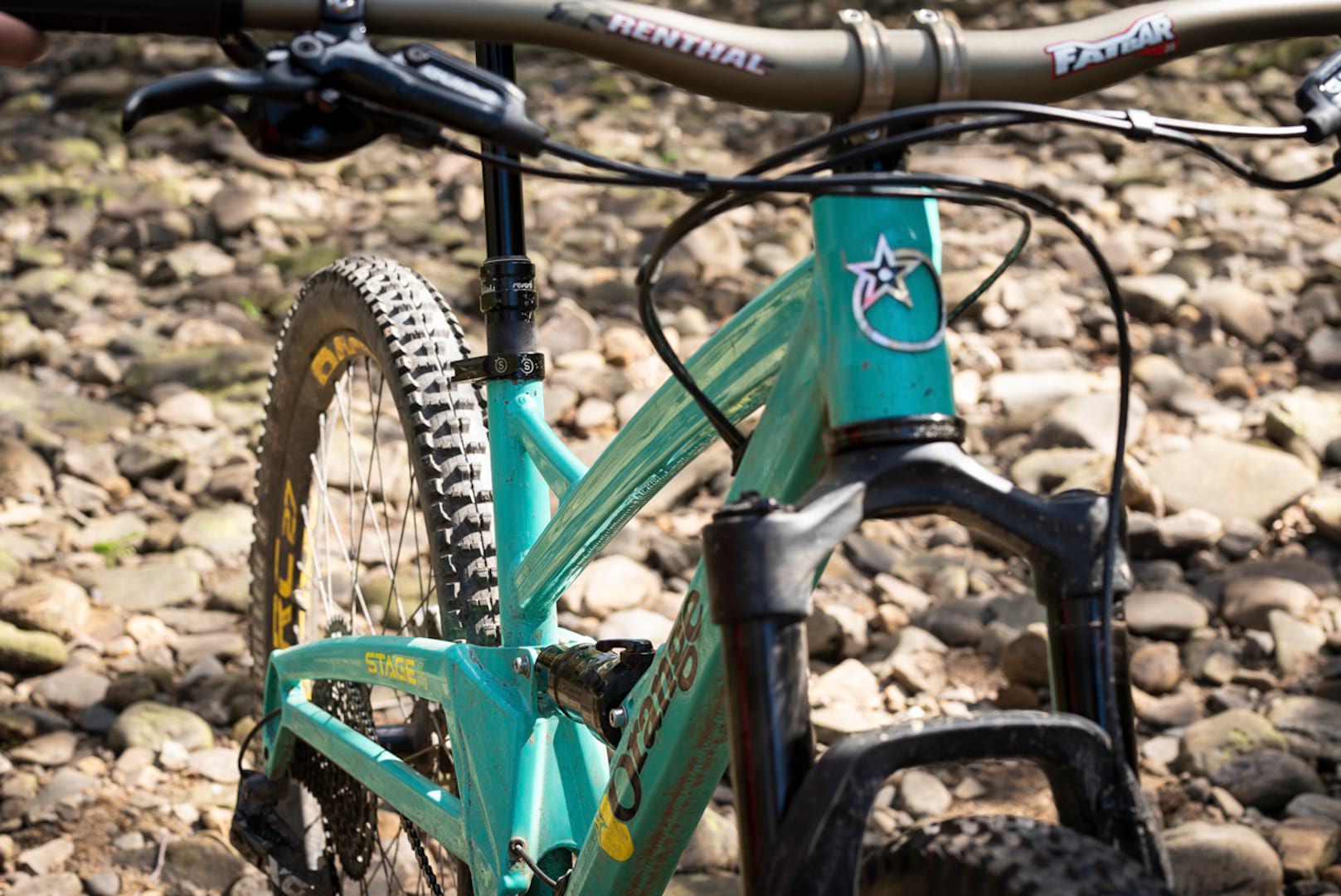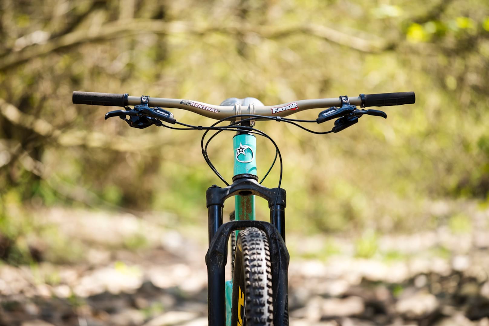 The robust, carbon-free build kit quashes any real emphasis on weight-saving though, but it helps to provide some clues as to what sort of riding the Stage 4 is up for. You’ll find powerful quad piston SRAM Guide brakes and 180mm rotors, along with huge 800mm Renthal Fatbars and a chunky Maxxis Minion DHF tyre up front.