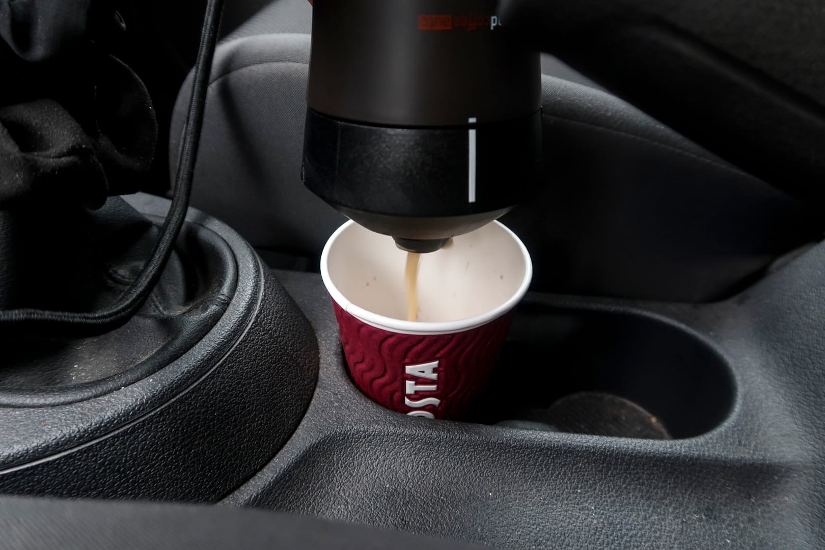 This hand held coffee maker comes in a handy little carry case packed full of everything you need for a coffee on the go (coffee not included). It plugs into your 12v socket in your car and claims to take just over four minutes to heat up, however it’s closer to ten minutes in my experience.