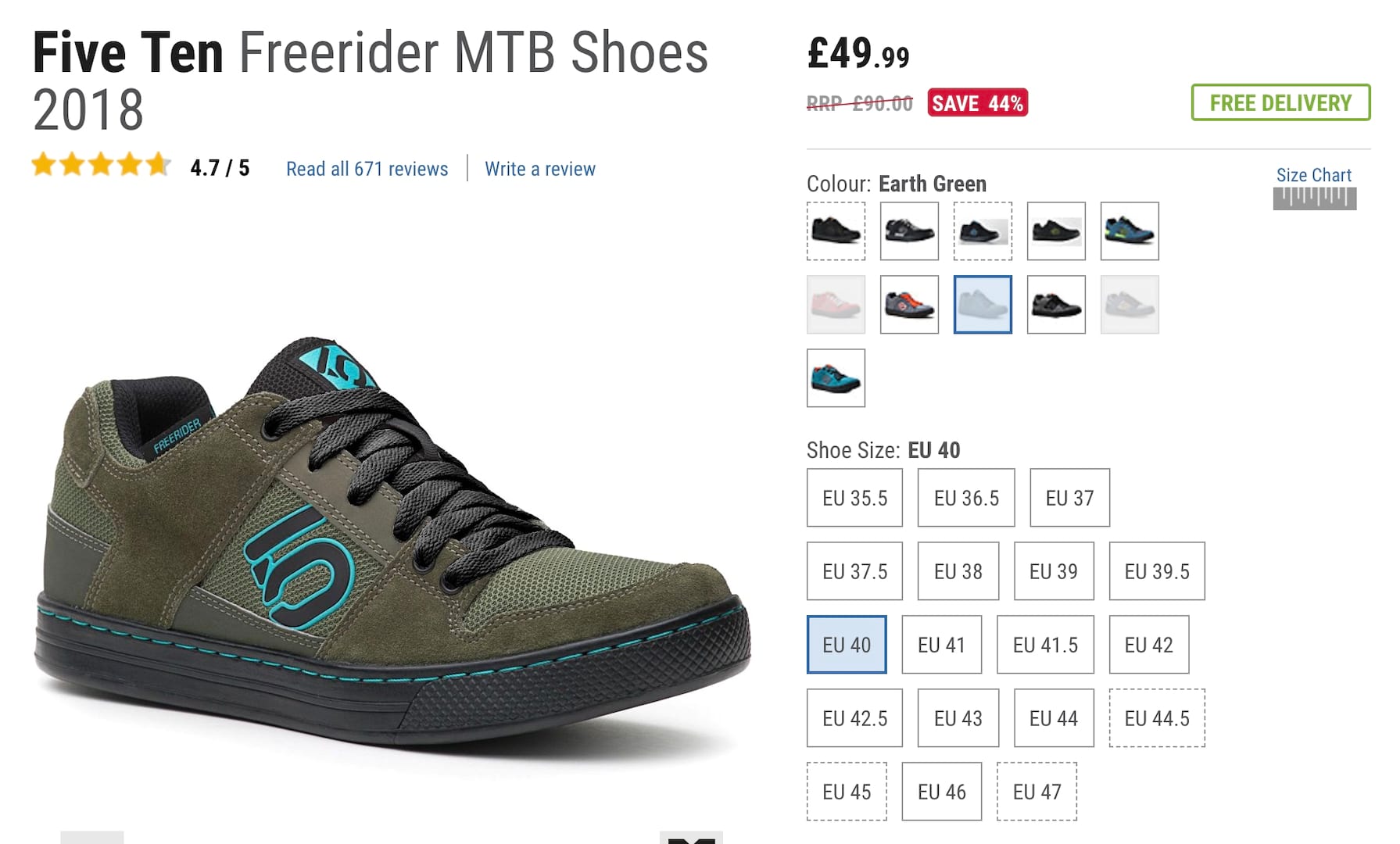 There always seems to be a Five Ten offer if you hunt around. Chain Reaction Cycles have Five Ten Freerider flat shoes on sale from £49.99. We’ve been through all the options so you don’t have too and only the Earth Green colour gets this full 44% reduction.