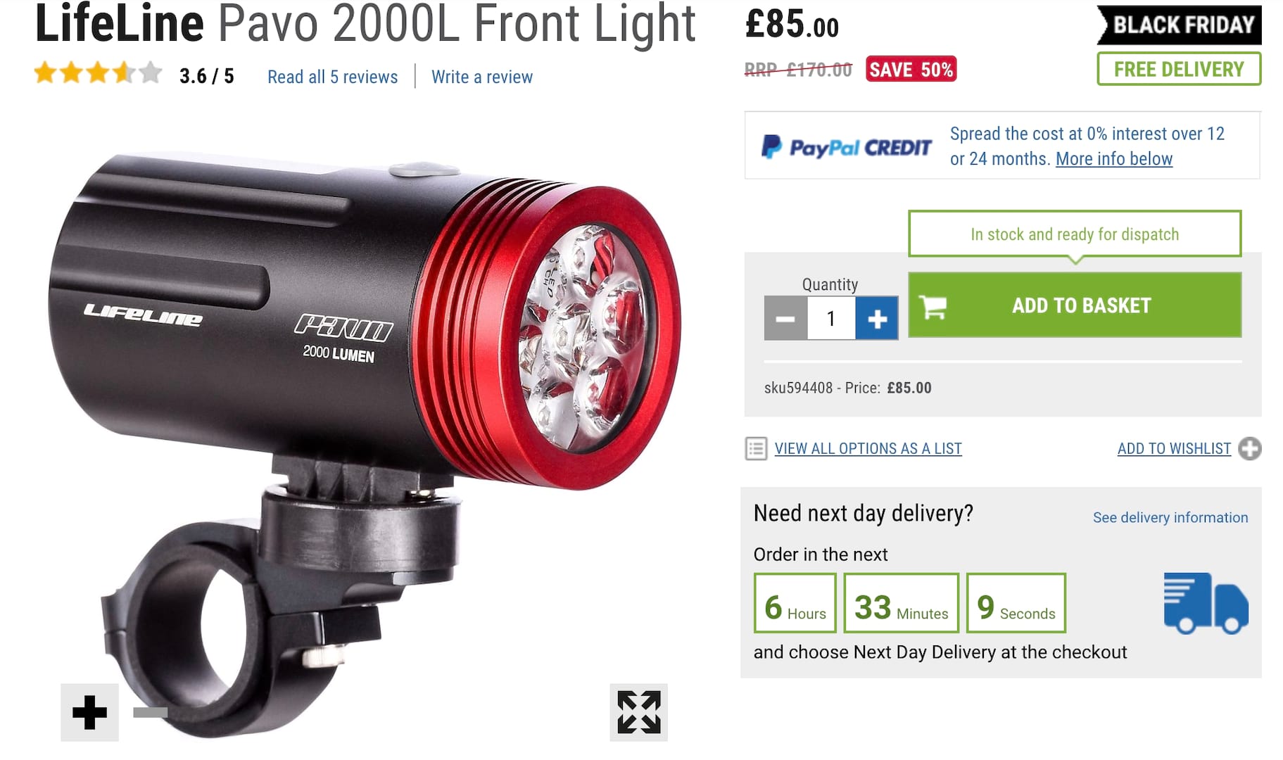 Half price LifeLine Pavo 2000L Front Light