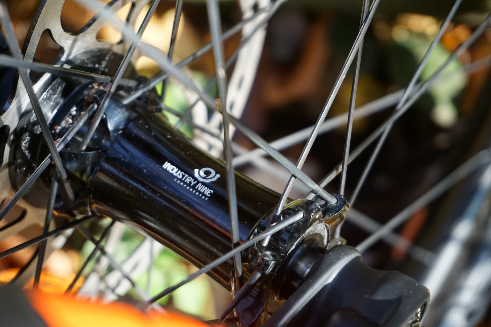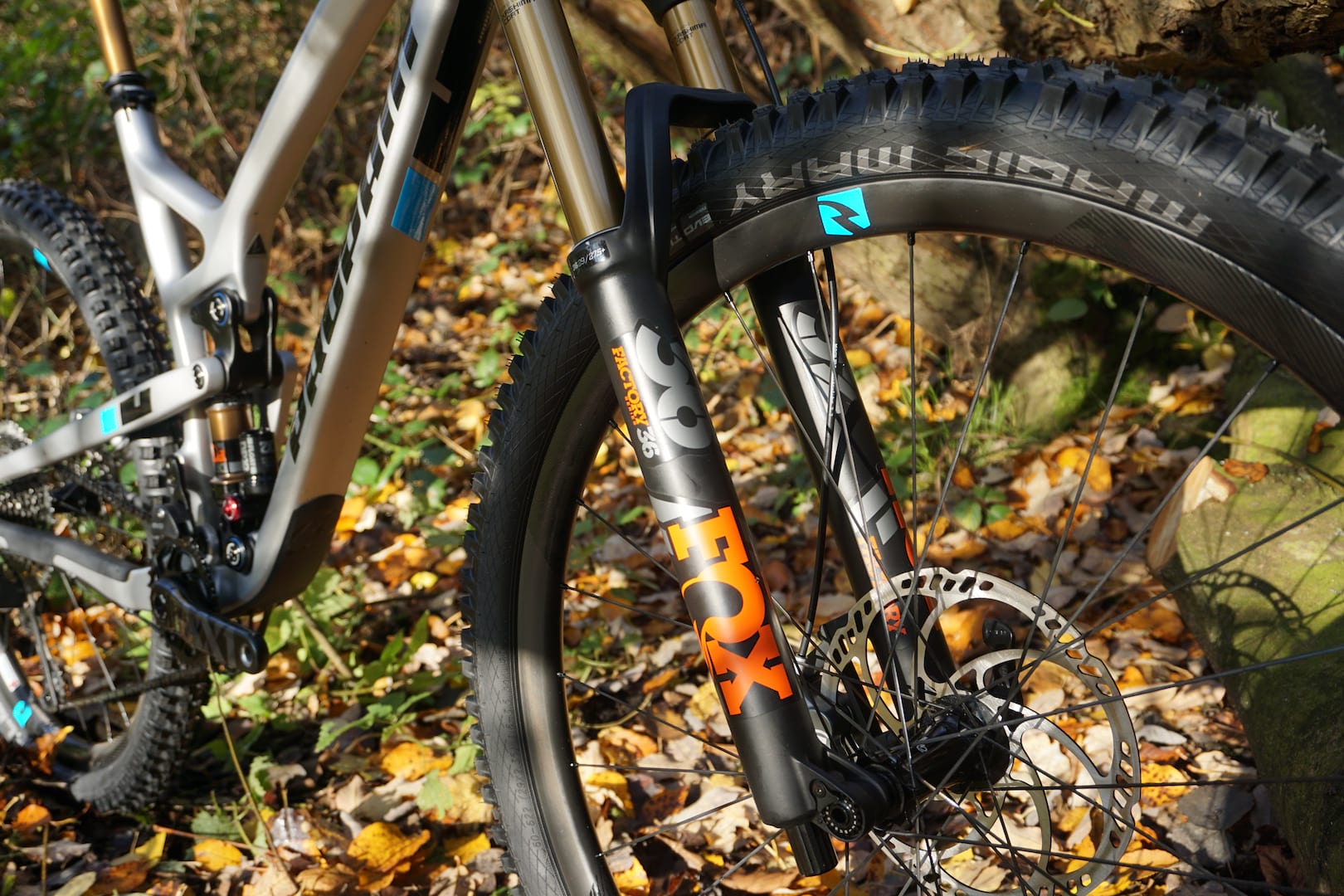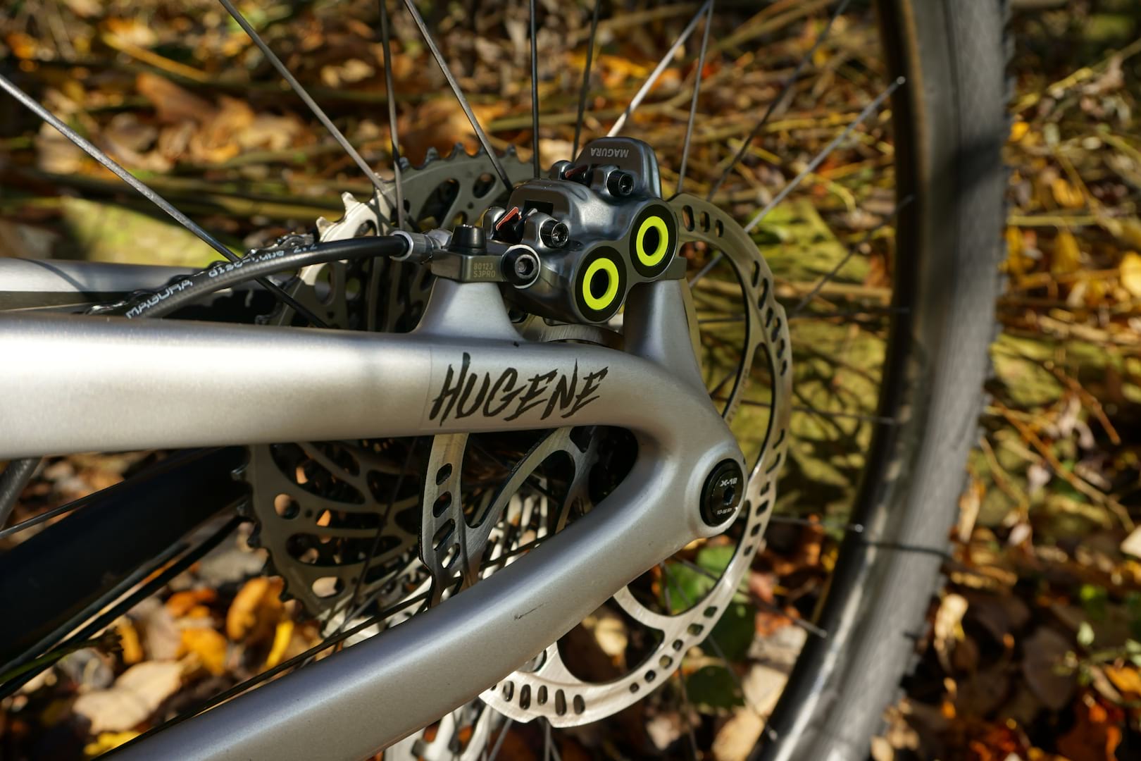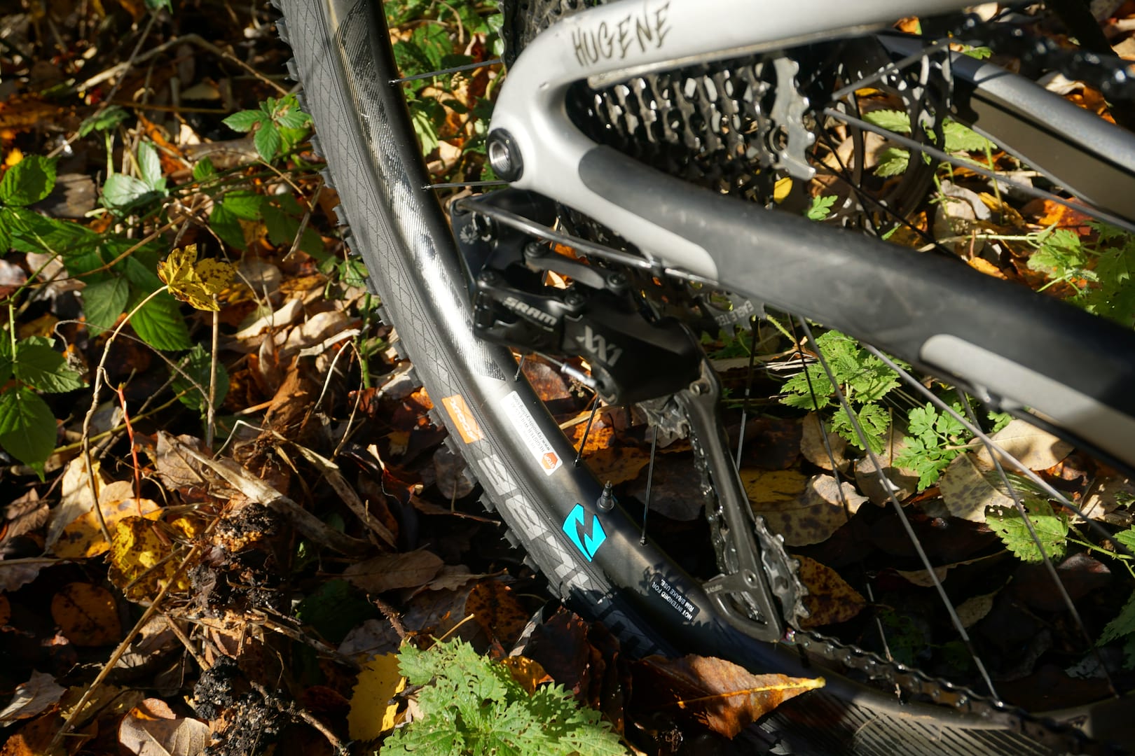 Continuing with the carbon theme, the Hugene rolls on a set of Reynolds Black Label Carbon 29 Enduro wheels. These are based around a set of tubeless ready, 28mm internal, asymmetric carbon fibre rims laced to Industry Nine hubs giving 3 degrees of engagement.