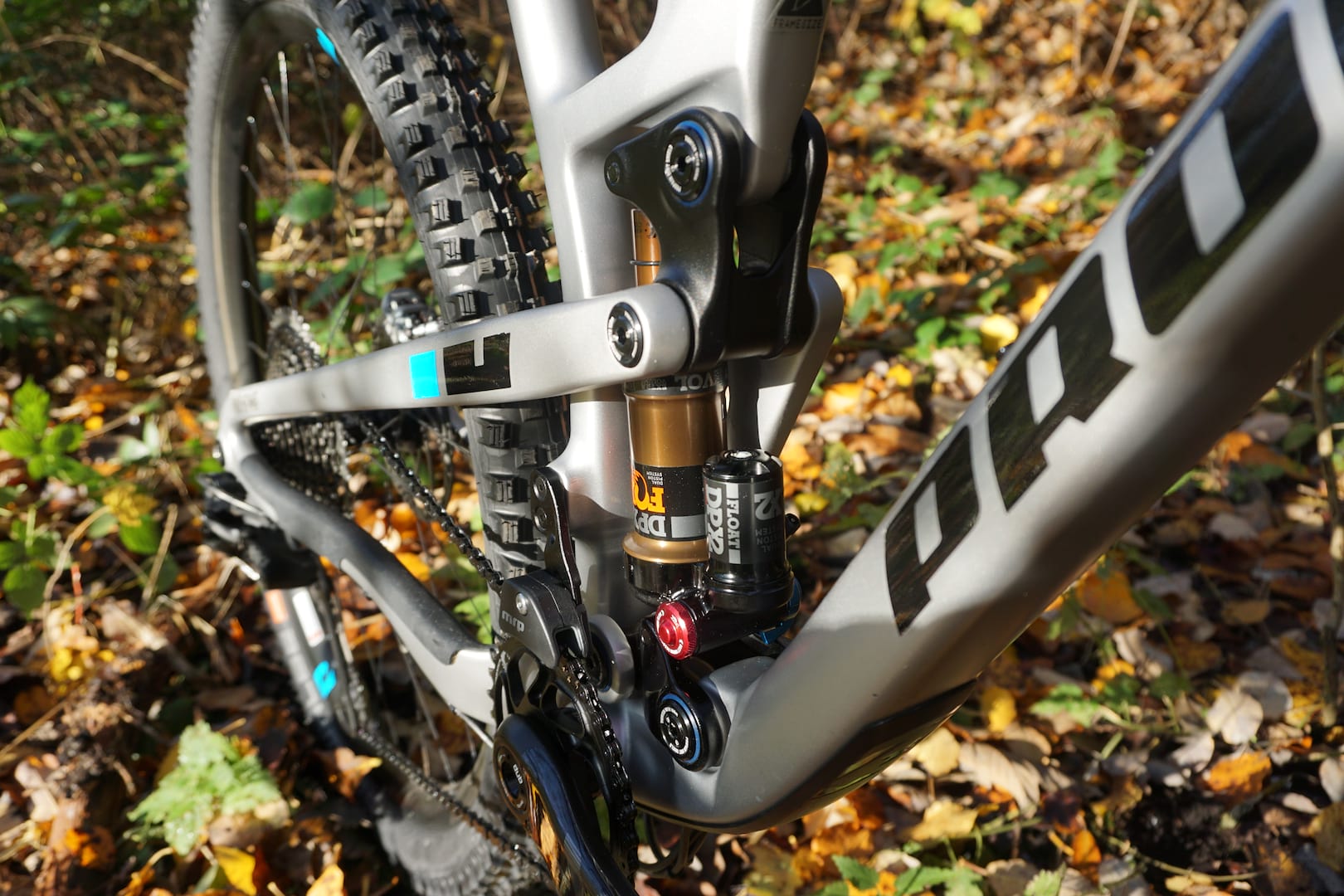 Unlike other models in the Propain range, the shock on the Hugene has been moved in front of the seat tube, as opposed to behind, getting it out of the way of mud and trail detritus, and freeing up plenty of space for mud clearance.
