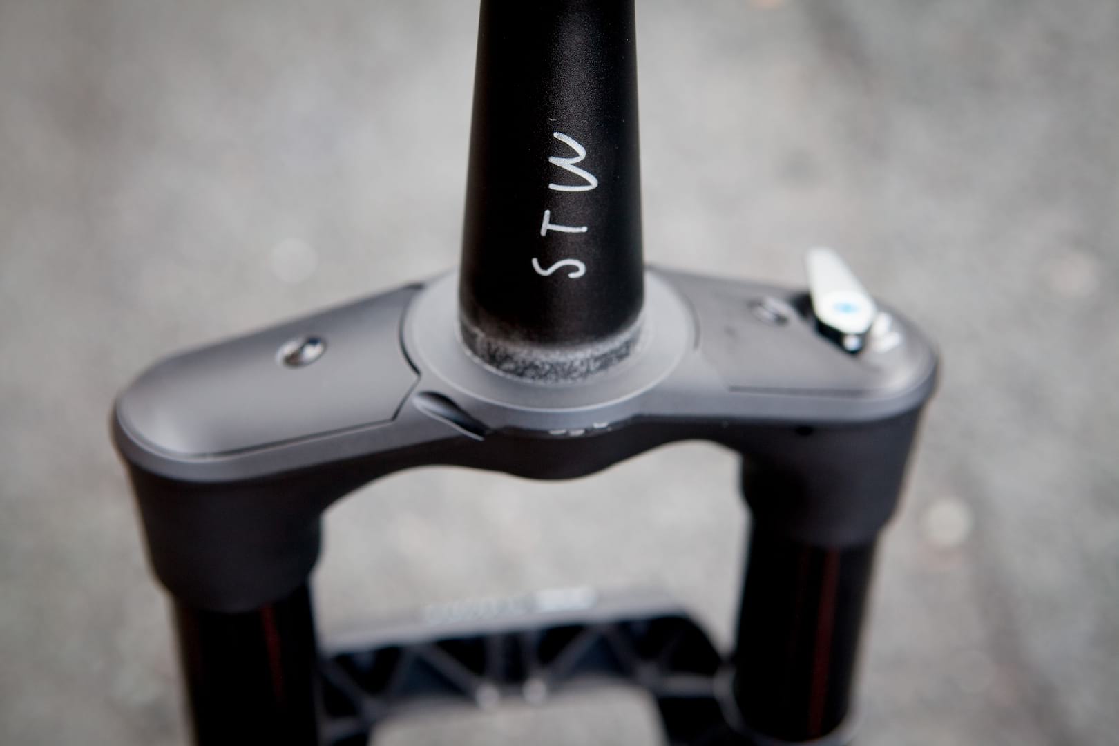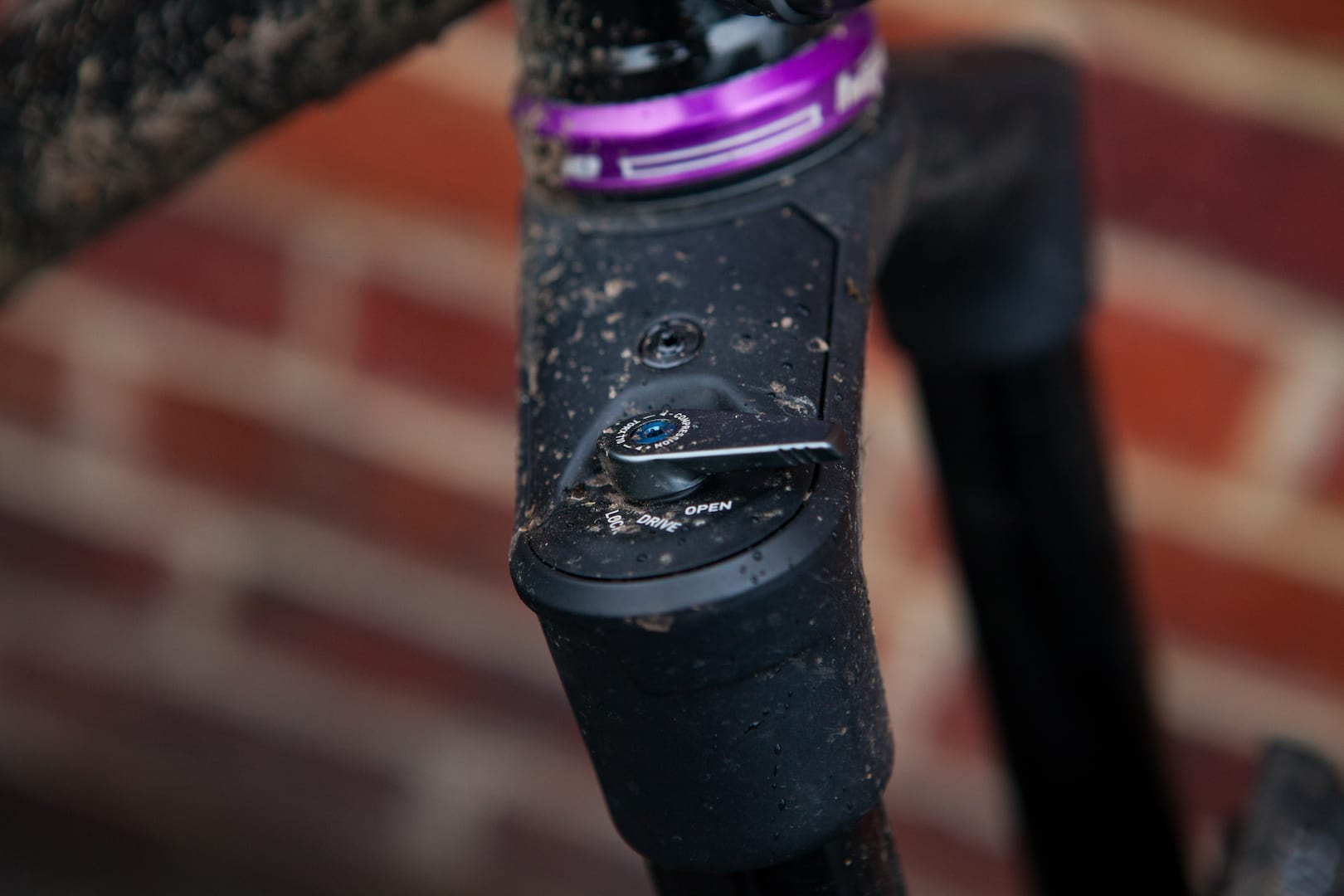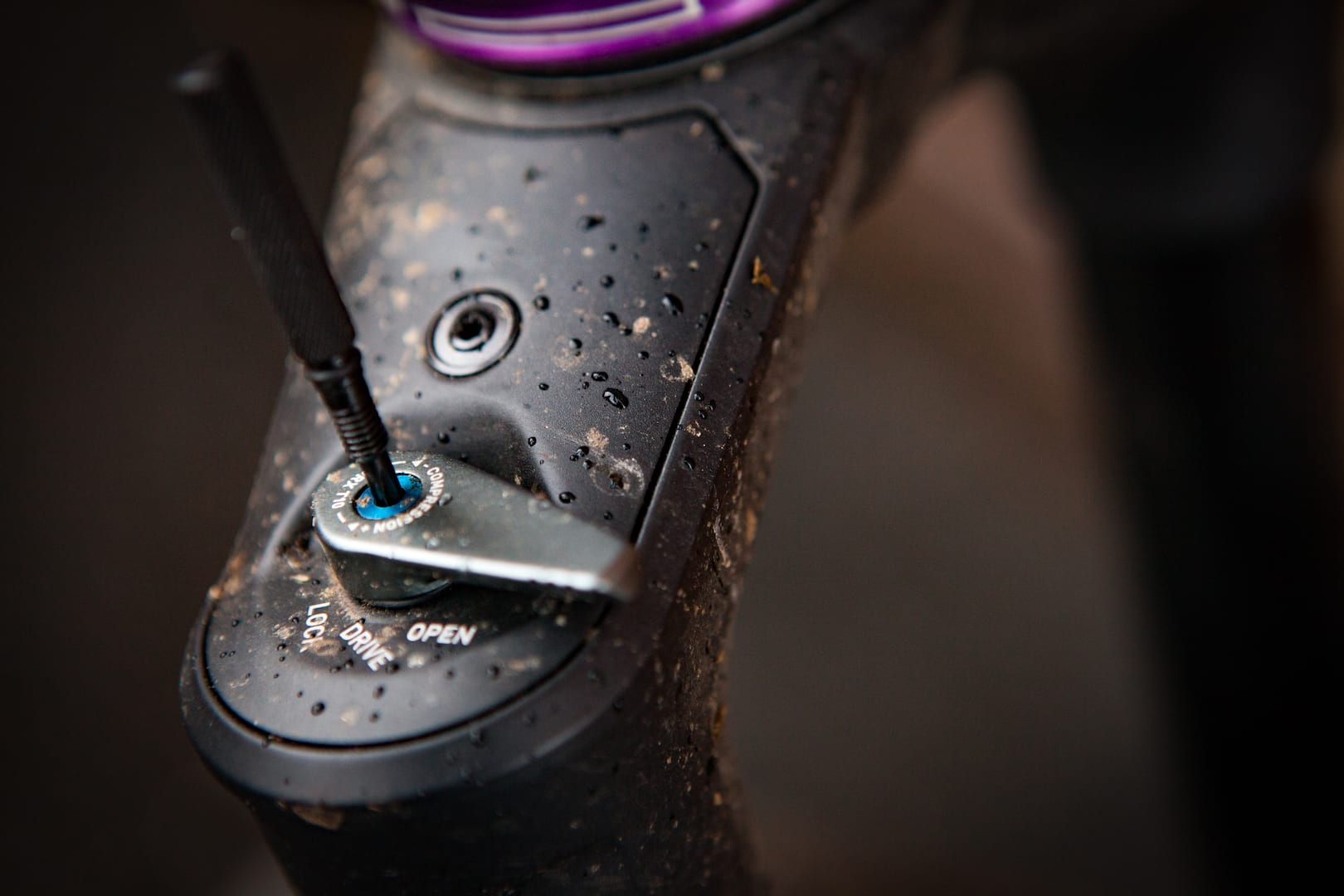 While we are on damping, low speed compression can be adjusted from a lever on the right hand side of the crown. It’s the only visible adjustment on the fork and is kept simple with a lock-out, “drive” and open setting.