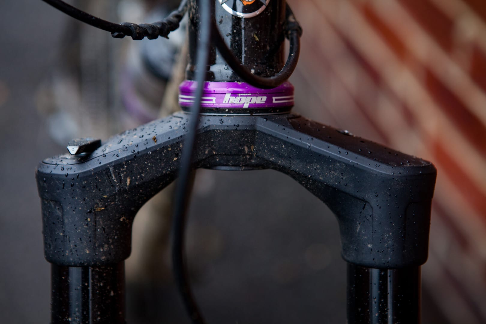 Come the rain though, it bolted on easily enough (although the omnipresent T10s felt a bit fiddly here). It is roughly as effective at keeping spray off your face as a zip-tied EnduroGuard style guard, but quicker to fit and who wants zip-ties on their posh fork if they can help it?
